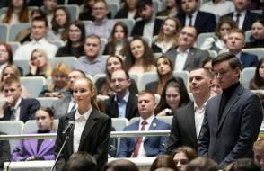 В актовом зале прошла встреча с руководством области: председателем Гомельского облисполкома Иваном Крупко, помощником Президента — инспектором по Гомельской области Юрием Горловым, председателем областного Совета депутатов Екатериной Зенкевич. На встрече был поднят целый ряд вопросов, начиная от задачи воспитания молодёжи в духе патриотизма и заканчивая конкретными инициативами по реализации их в спортивной, научной, культурной и общественной жизни.