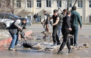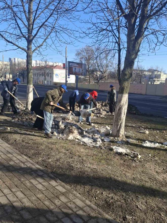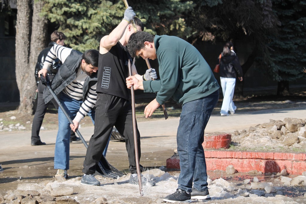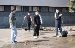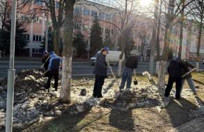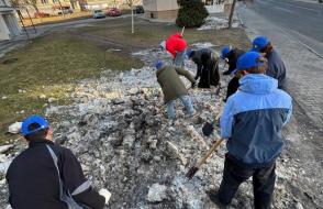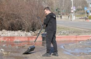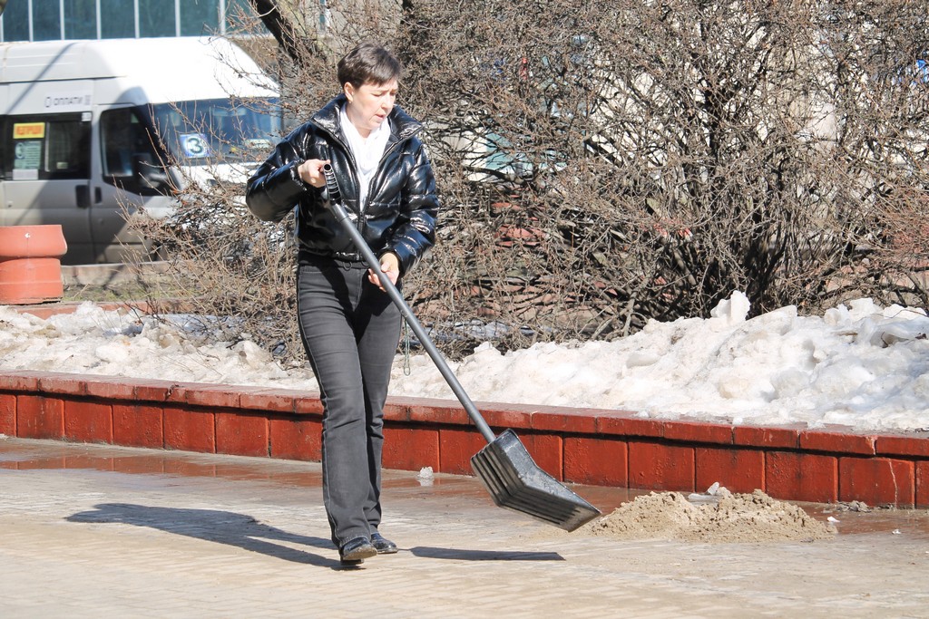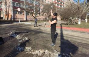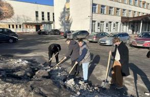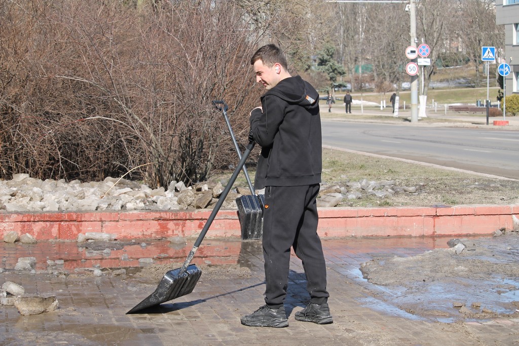 Вооружившись лопатами и хорошим настроением, преподаватели, студенты и сотрудники сообща очистили территории вокруг корпусов и общежитий от снега и наледи.