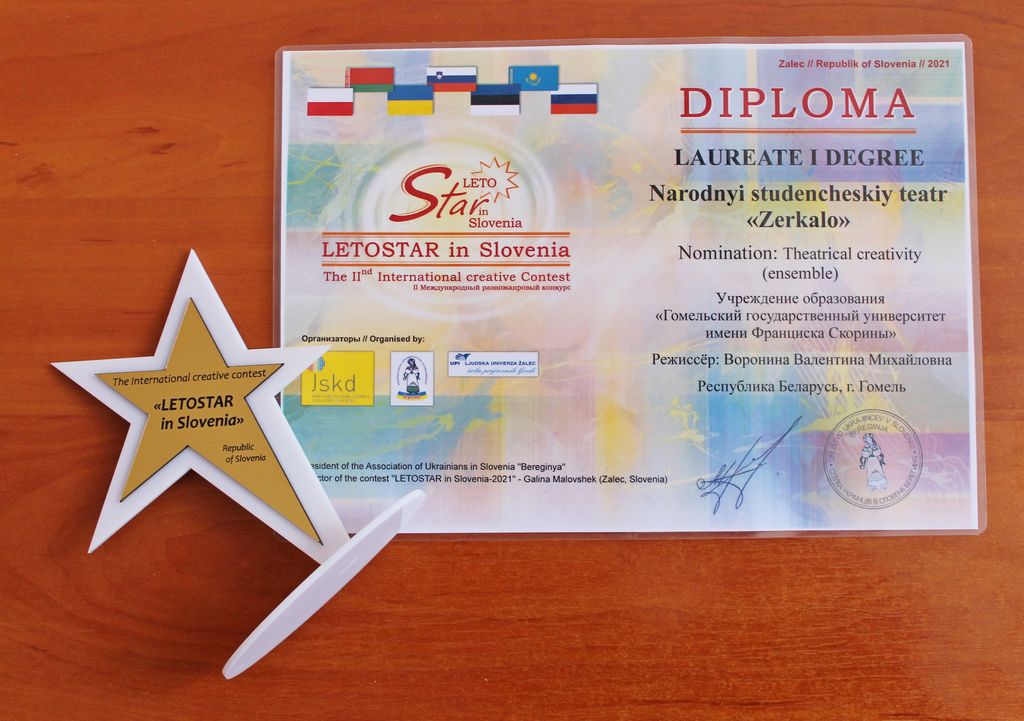 今年夏天,我校学生俱乐部的全国学生剧场“镜子”活动精彩纷呈,富有创意且富有成效。 我们的剧院观众参加了在 Zals(斯洛文尼亚共和国)市举行的第二届国际多流派比赛“斯洛文尼亚的 LETOSTAR”,成为获奖者和第一学位文凭的持有者。 祝贺小伙伴们取得胜利! 照片报告