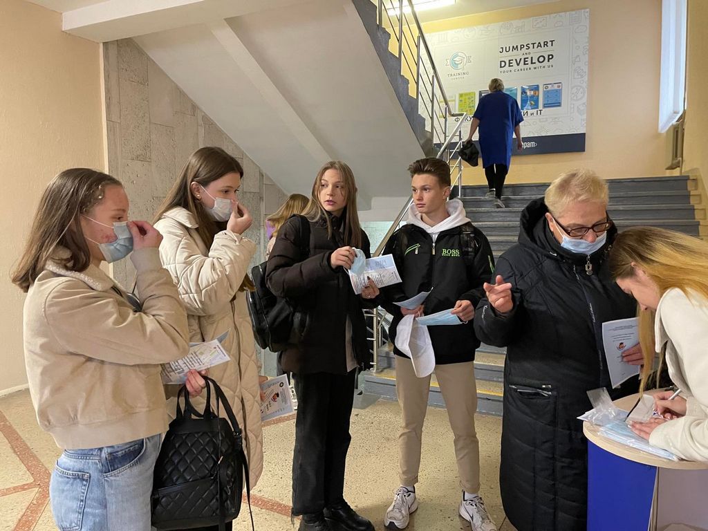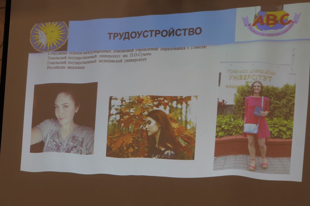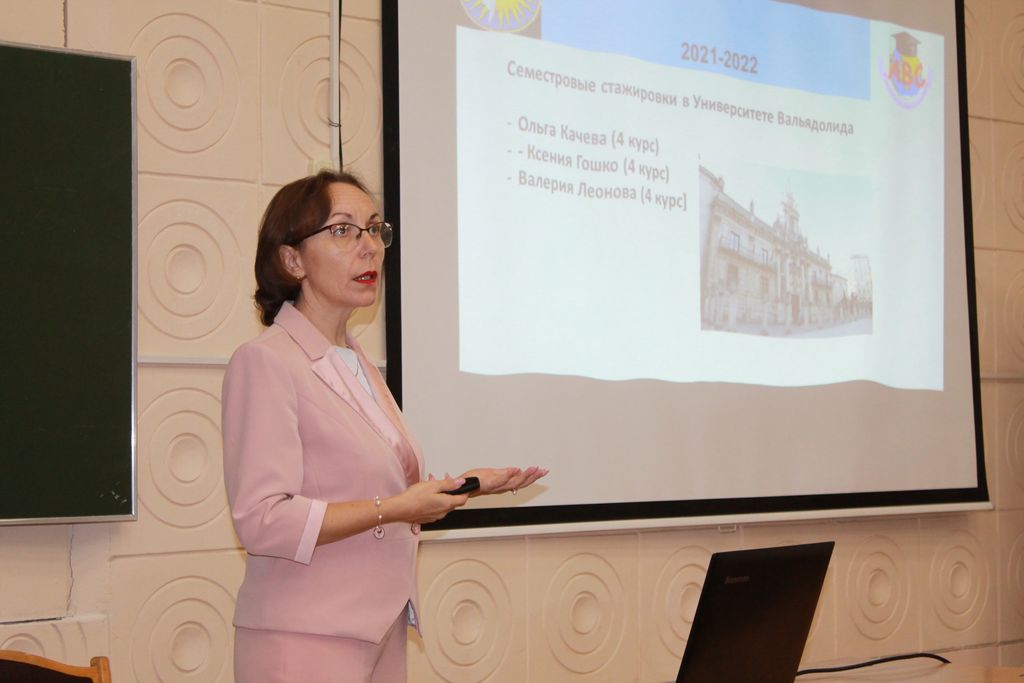 外语学院连续第六年向乐于在我们大学校园内度过假期的申请者敞开大门。会见了负责职业指导工作的教务长 Elena Vladimirovna Sazhina、Valentina Gavrilovna Good、部门负责人 Irina Aleksandrovna Khorsun 和 Svetlana Nikolaevna Kolotsa,罗马-日耳曼语言系实习教师 Adrien Sekkinni戈梅利市学校、中学、体育馆的学生,他们关心的与外国语学院的入学和培训有关的问题。 Elena Vladimirovna 和 Valentina Gavrilovna 的演讲反映了教师在各个领域的成就:教育、科学、教育活动。如今,30多位学生不仅能够与教师代表进行交流,还能沉浸在真实的学习环境中——像真正的学生一样参加外语实践课,平等回答问题与学生的基础上,进行对话并解决分配的教育任务。外语的世界离我们的申请者更近了!我们期待再次与您见面!
