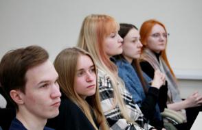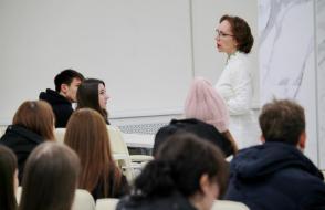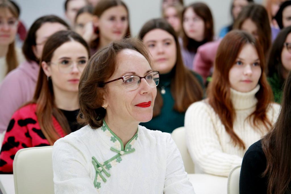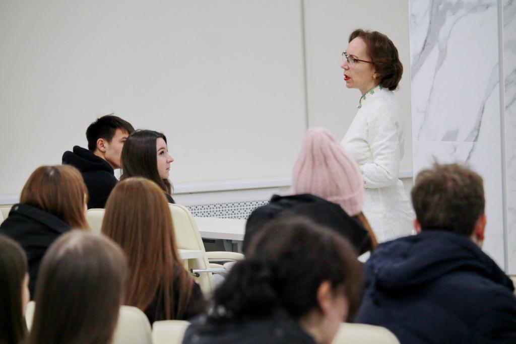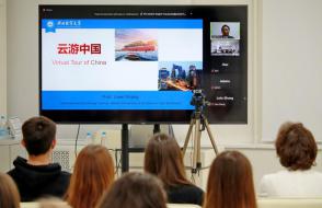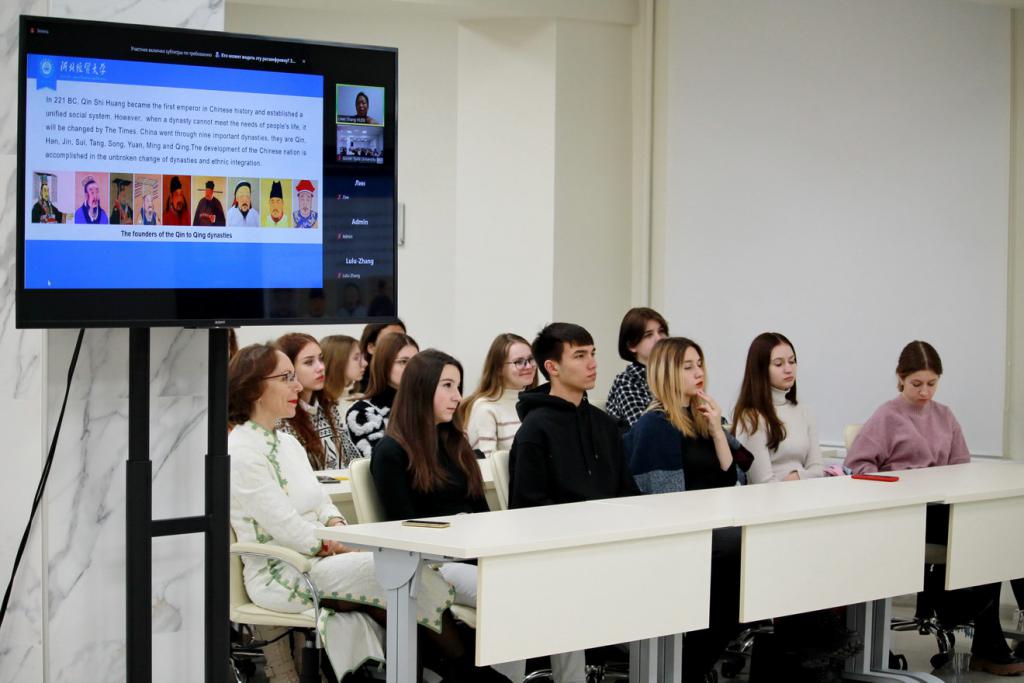 外语学院院长Elena Sazhina向外国同事致意,并让来自中国的讲师发言。 外国语学院二年级学生参加了在线讲座。