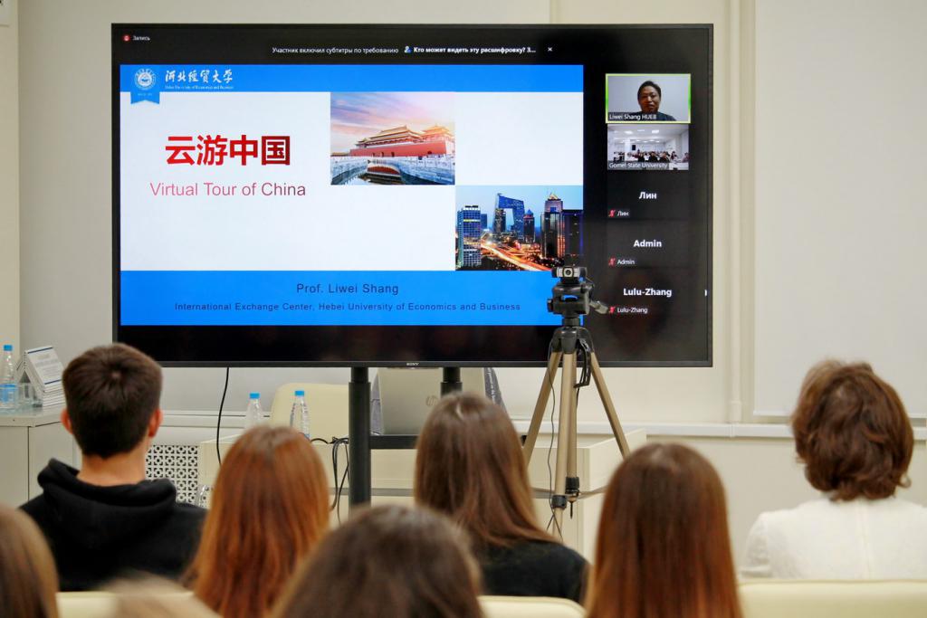 Francysk Skaryna国立大学会议厅举办了来自中国的河北经贸大学国际关系系主任、河北省政协委员、人社委员尚立伟教授在线讲座河北省对外友好委员会,河北省欧美大学研究生联合会常务理事,主题为“中国在线旅游”。