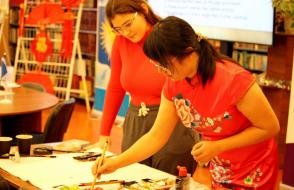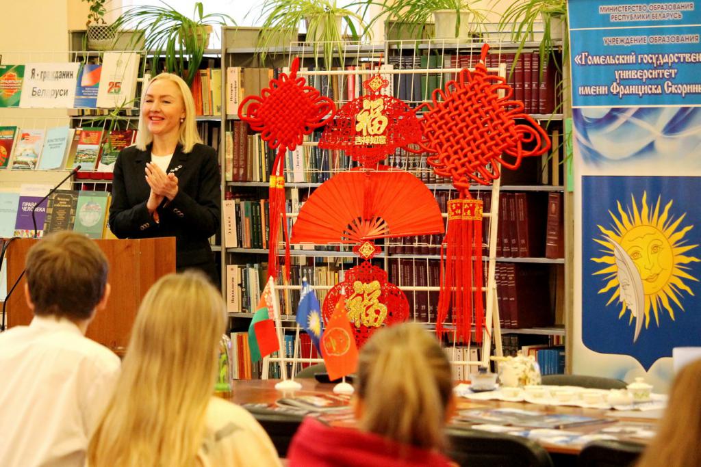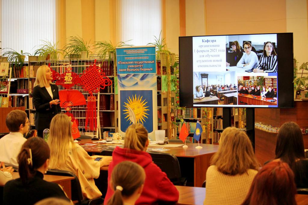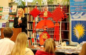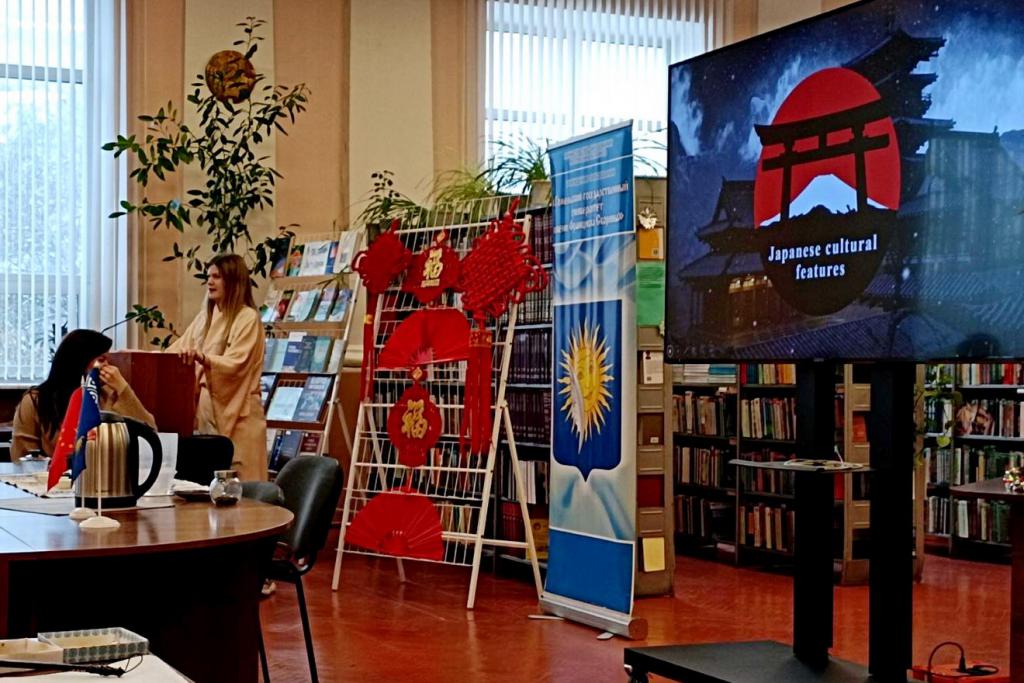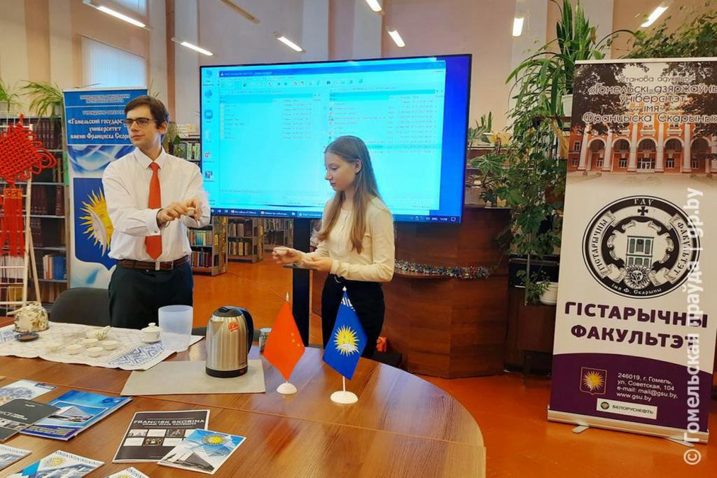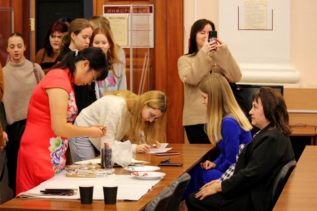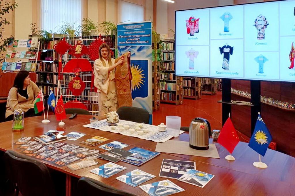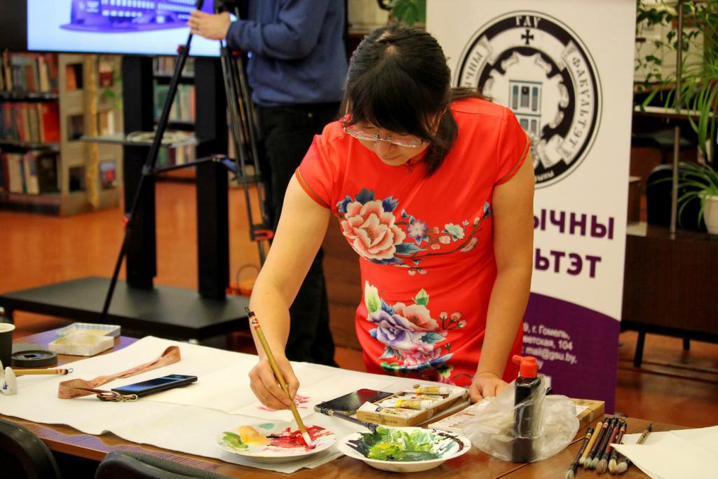 Stanislav Cherepko院长向孩子们致意,并表示有信心通过这次短途旅行,学童们不仅会学到很多新鲜有趣的东西,不仅了解各国的文化,还能更多地了解教职工。 负责人、教育科学候选人、副教授 Tatyana Pochinok 向孩子们详细介绍了跨文化交流和国际旅游系的活动。 这是该大学最年轻的院系之一,成立于 2021 年 2 月 1 日。 它在国际文化关系和旅游领域培养高素质和有竞争力的专家。 高中生了解了中国文化发展的历史和民族心态的特点。 GSU孔子学院代表孙大甲举办了国画技法国画大师班,所有想涉足艺术的人都兴致勃勃地尝试掌握这门难得一见的技艺。 听二年级学生 Anastasia Chetverushkina 讲述人际交往、日本文化的传统和象征,以及民族服饰、如何在和服上系腰带等话题,也同样有趣。