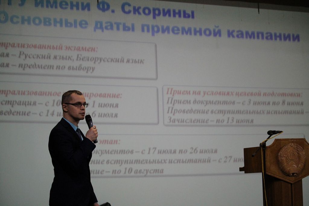 2月11日,“定向培训会”在F. Skorina Gomel State University举行。 F. Skorina 州立大学第一副校长 Andrey Kruk 向与会者致欢迎辞。 招生委员会执行秘书Alexander Rudenkov谈到了2023年招生活动的特点、目标地区的录取、定向培训条件下学习(或派遣)人员的福利、强制性工作的条款年轻的专家。 此外,白俄罗斯共和国调查委员会、戈梅利州生产林业协会、戈梅利教育、体育和旅游部门等订购人员组织的代表也出席了此次活动。 照片报告