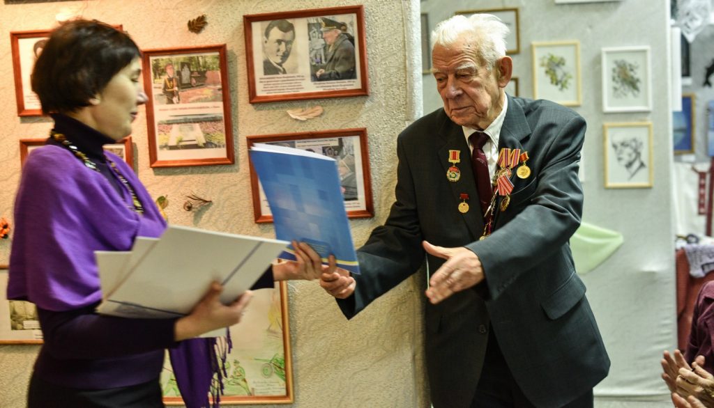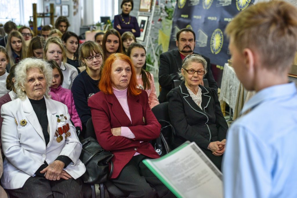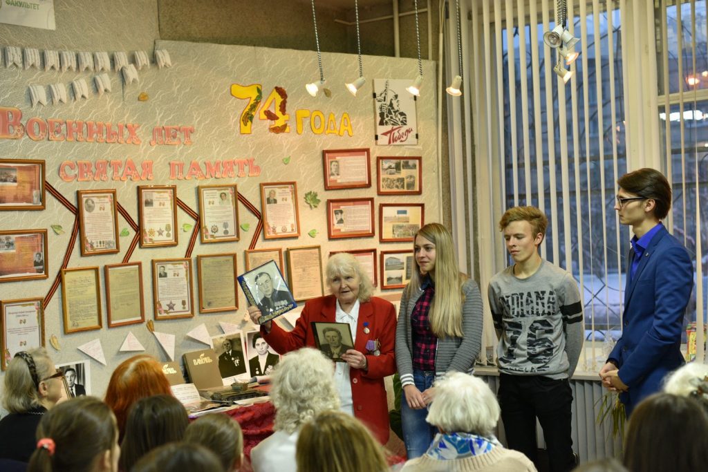 Время отдаляет и приглушает трагические события войны, однако подвиг человека не подлежит забвению. Такова идея выставочного проекта «Военных лет святая память», подготовленного участниками волонтерского отряда «Память» СШ № 2 г. Хойники совместно со студентами исторического факультета ГГУ имени Ф. Скорины. Его презентация, прошедшая в университете 11 декабря, собрала, объединила и породнила представителей разных поколений – школьников, студентов, пожилых людей – детей войны.