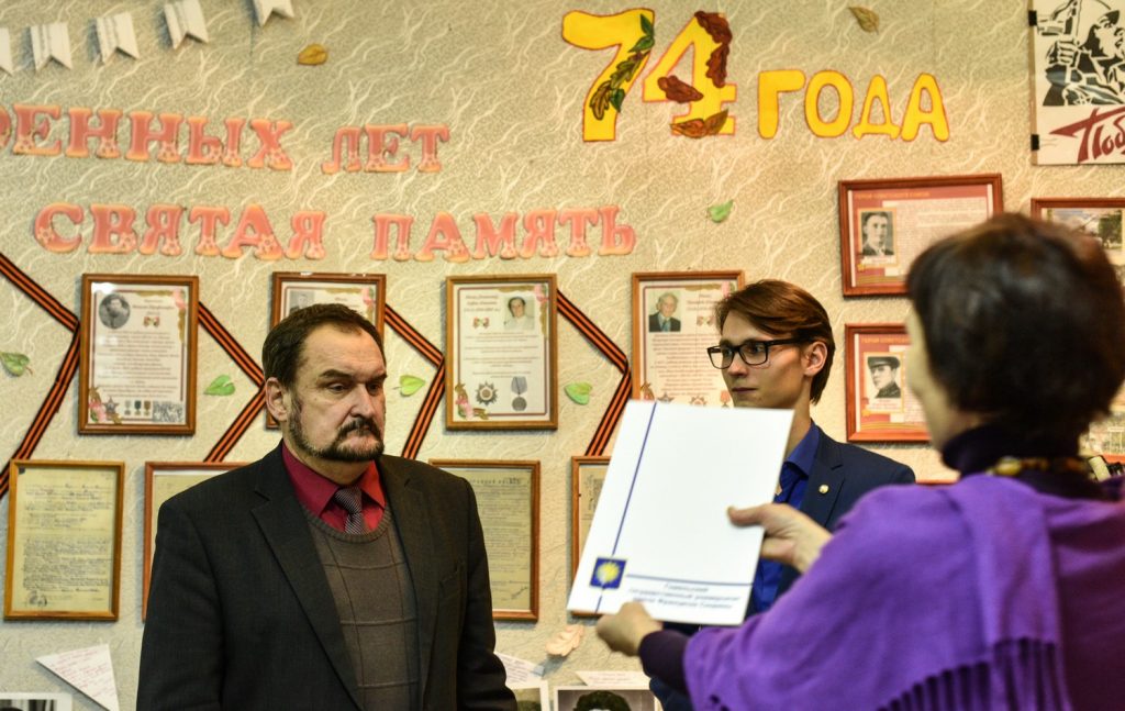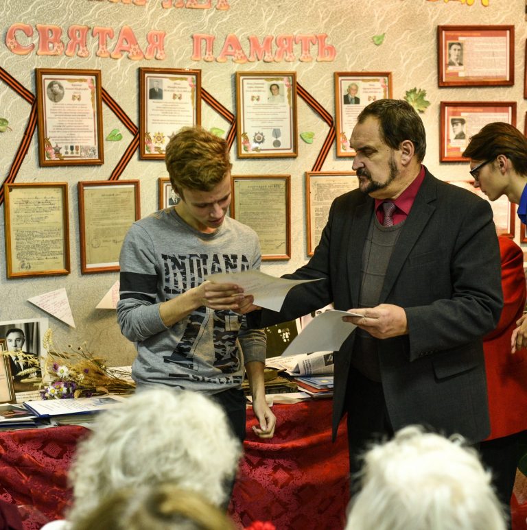 И дети войны, и школьники, и студенты-историки, подготовившие выставочный проект «Военных лет святая память», были награждены благодарственными письмами ректората ГГУ имени Ф. Скорины, деканата исторического факультета, директора школы.