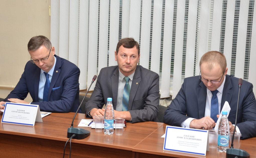 С приветственным словом к участникам круглого стола обратился ректор ГГУ Сергей Хахомов. В своём выступлении Сергей Анатольевич сделал акцент на активном участии студентов университета в различных мероприятиях международного уровня, организуемых управлением спорта и туризма Гомельского облисполкома, и проявил заинтересованность в дальнейшем развитии совместной деятельности по созданию привлекательного туристического имиджа нашего региона.
