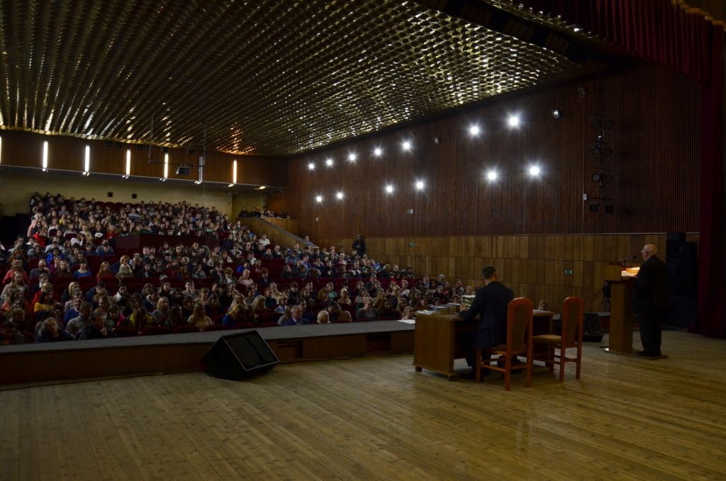 — Моя задача – выступить перед студентами, преподавателями и сотрудниками учебного заведения, прежде всего, как политик, — обозначил гость цель своего визита в вуз, – обсудить итоги работы за минувший год, расставить акценты на наиболее важных сферах жизни страны, рассказать о наших успехах и трудностях.