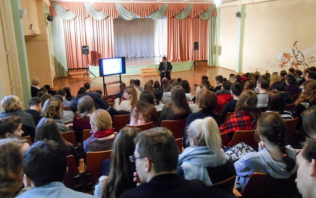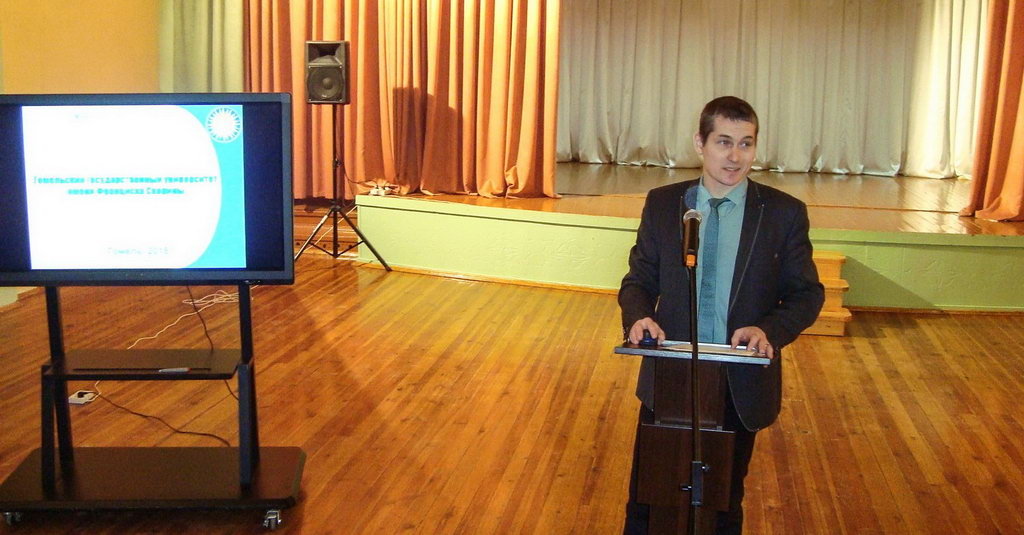 В рамках данной профориентационной работы, направленной на активизацию поступления абитуриентов в Гомельский государственный университет имени Ф. Скорины, с докладом выступил заместителя декана заочного факультета Тимур Бородич. Он представил презентацию с кратким обзором об одном из ведущих белорусских вузов и преимуществах быть его студентом, а также с удовольствием ответил на вопросы ребят, которые желают поступить в ГГУ.