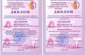 Горбычёв Евгений и Герасименко Владислав, руководители Галезник Ольга Ивановна, Мележ Татьяна Александровна (конкурс «Современное цифровое творчество «Арт-портал», номинация «Рэцытацыя. Творческий опыт»);