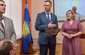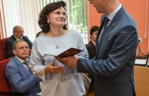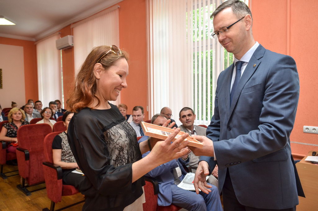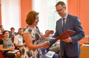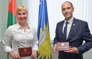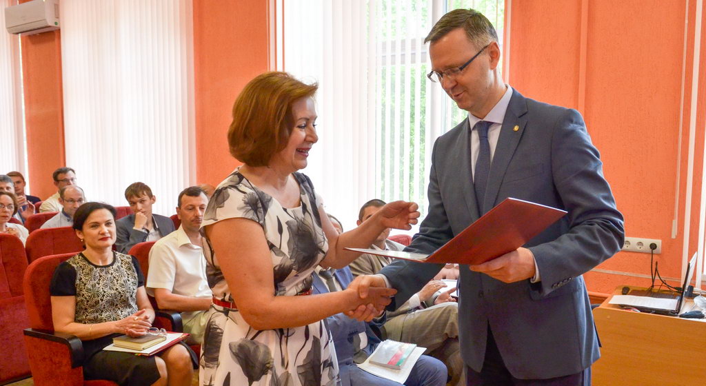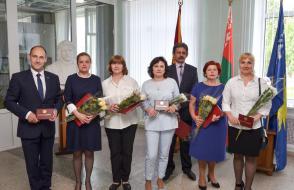 За многолетний плодотворный труд Почетные грамоты ГГУ имени Ф. Скорины из рук ректора Сергея Хахомова получили заместитель главного бухгалтера Ирина Янковская, бухгалтер 1 категории Инна Ольховая, ведущий лаборант кафедры математических проблем управления и информатики Светлана Гришкова.