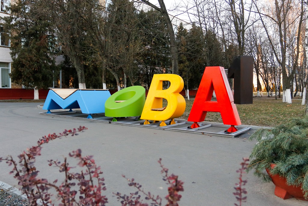 Возле Гомельского государственного университета имени Франциска Скорины завершилась установка арт-инсталляции из скульптур-букв, которые вместе образуют слово «МОВА». Это шестой из серии таких объектов, установленных за последние несколько месяцев компанией А1 во всех областных центрах Беларуси совместно с инициативой «Веліч роднай мовы».