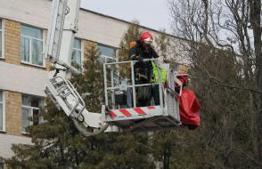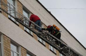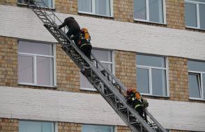 На тактико-специальном учении было задействовано 12 единиц спецтехники МЧС, отработана эвакуация людей с 4 этажа и крыши.