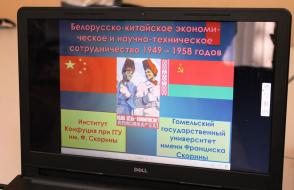 В рамках работы Института Конфуция при ГГУ имени Франциска Скорины прошла онлайн-встреча с участием содиректора Института Конфуция с белорусской стороны д.х.н., профессора А.В. Рогачёва и проректора по научной работе, д.т.н., профессора О.М. Демиденко. На встрече  были проанализированы промежуточные итоги научно-исследовательской работы по научно-техническому и экономическому сотрудничеству между БССР и КНР в период с 1949 по 1958 год,  которая проводится по заказу китайской стороны коллективом преподавателей и студентов исторического факультета в составе д.и.н., профессора Н.Н. Мезги, к.и.н. доцента Е.Н. Дубровко, студента 3 курса А. Галахова.