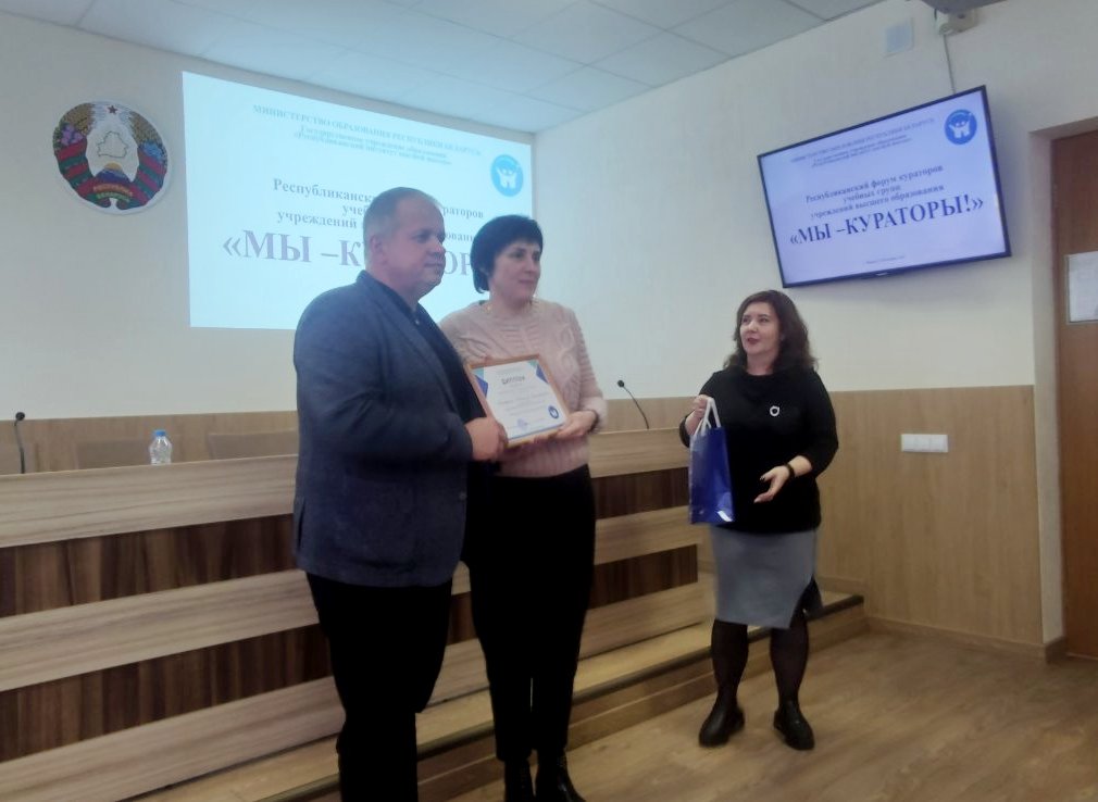 27-28 октября в Республиканском институте высшей школы прошел I Республиканский форум кураторов учебных групп учреждений высшего образования. В Форуме приняли участие более 100 человек. Среди них – кураторы ГГУ имени Ф. Скорины, доценты кафедры химии Макаренко Т.В., Воробьева Е.В., Хаданович А.В. и заместитель декана по воспитательной работе Пантелеева С.М. Кафедру зоологии, физиологии и генетики представлял доцент Гулаков А.В.