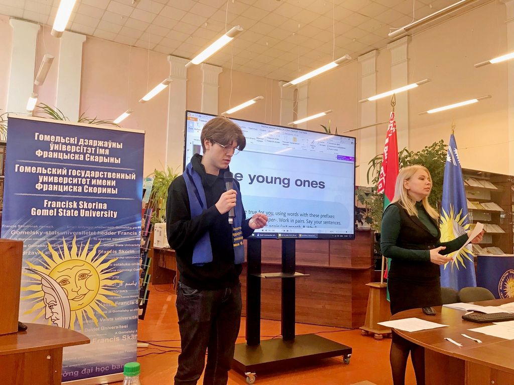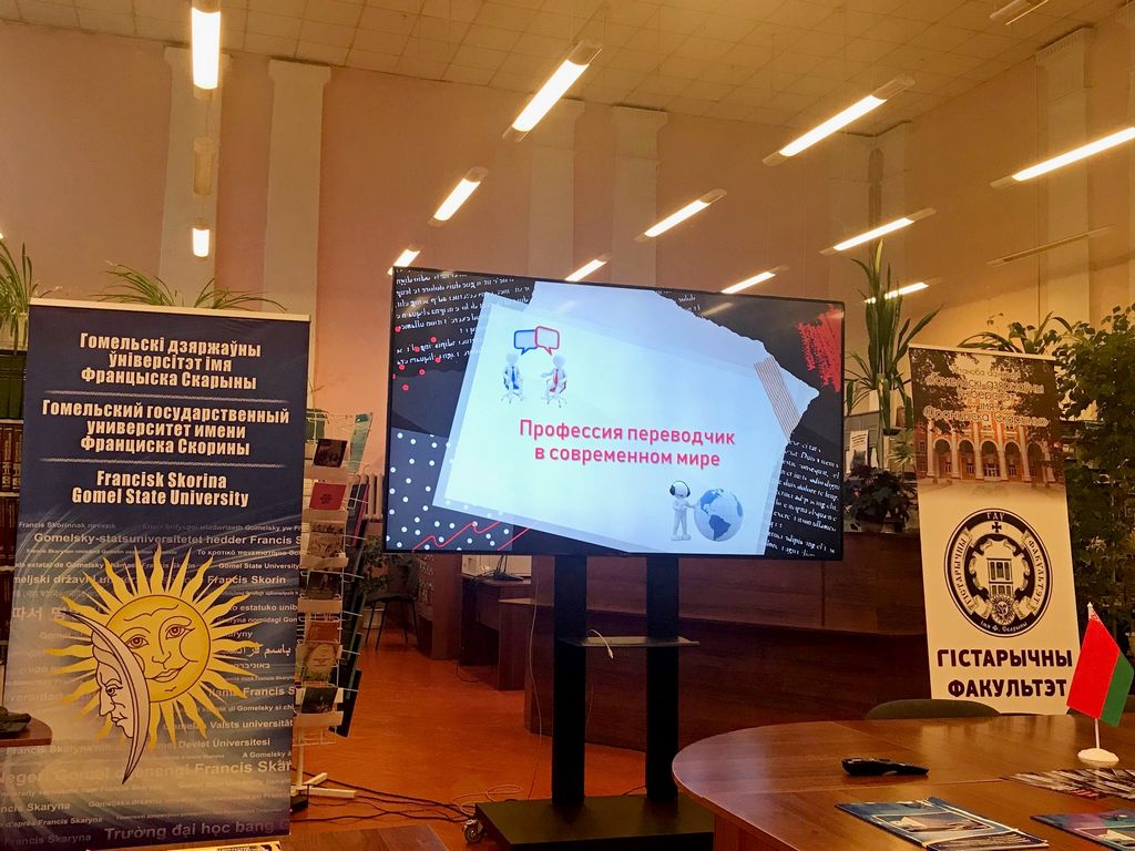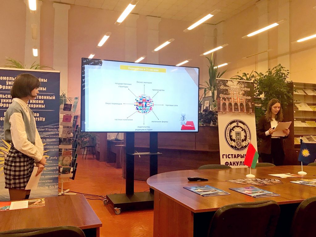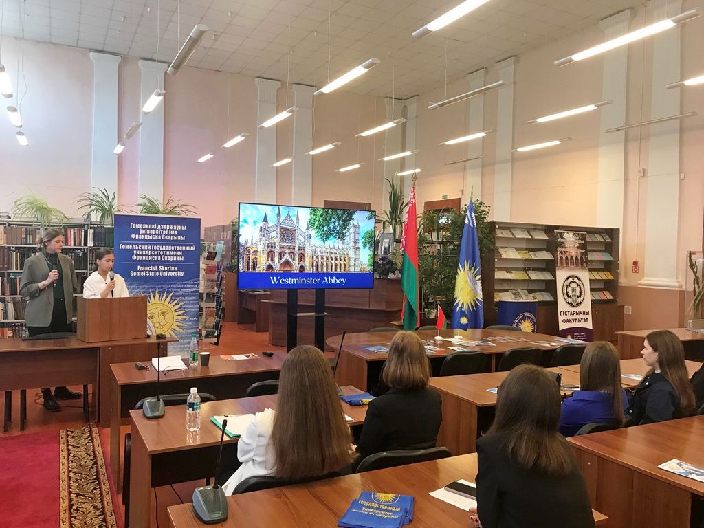 Кафедра межкультурных коммуникаций и международного туризма 2–3 ноября организовала серию профессионально ориентированных англоязычных мероприятий «Лингвистические каникулы» для учащихся старших классов средних школ г. Гомеля и Гомельской области, мотивированных в изучении иностранных языков.