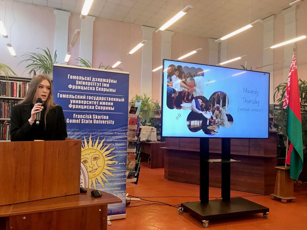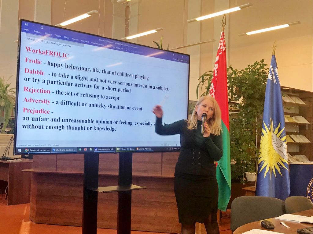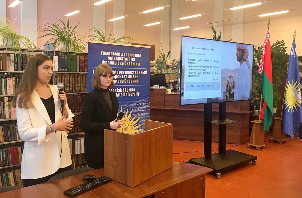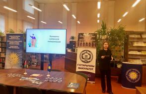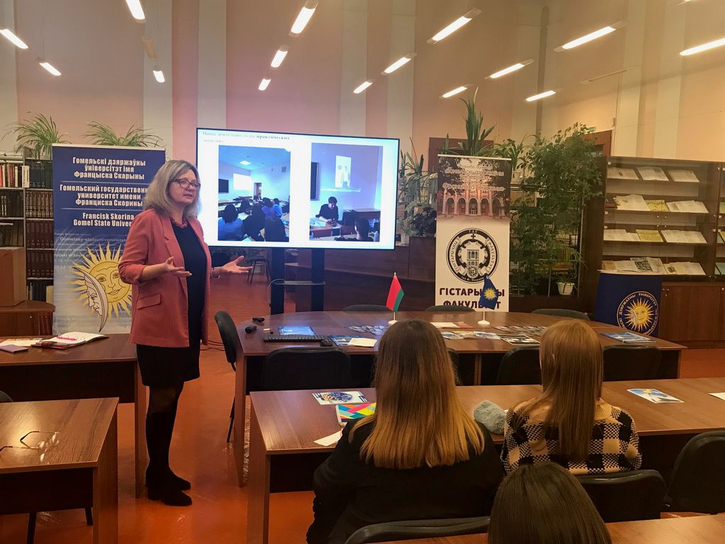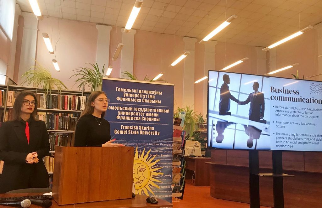 Кафедра межкультурных коммуникаций и международного туризма 2–3 ноября организовала серию профессионально ориентированных англоязычных мероприятий «Лингвистические каникулы» для учащихся старших классов средних школ г. Гомеля и Гомельской области, мотивированных в изучении иностранных языков.