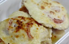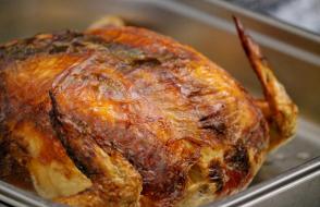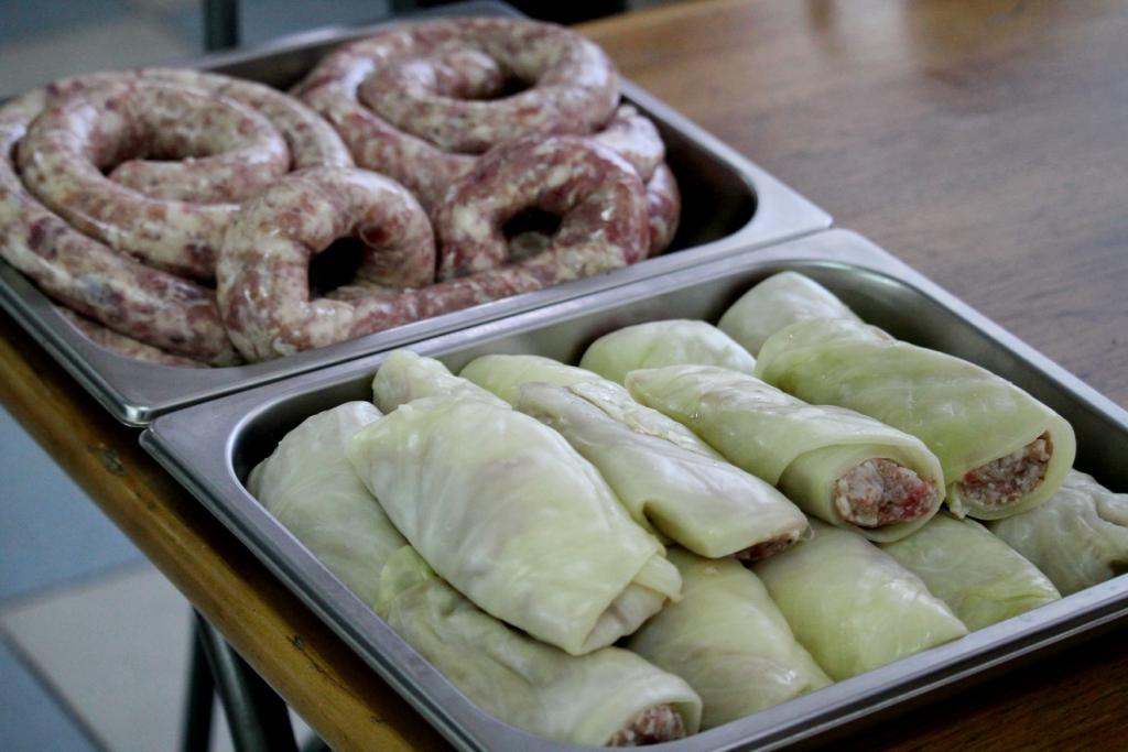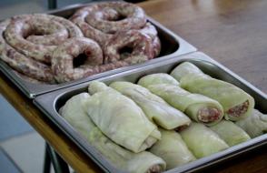 В этот раз вашему вниманию шеф-повара университета предлагают запеченную до хрустящей золотистой корочки курицу, фаршированную мини-блинчиками с мясным фаршем и грибами. И это не все! Кроме того, в меню представлены: руляда из птицы с черносливом, студень из свинины, рулет сырно-мясной, язык заливной (говяжий), паштет из печени, сальтисон «Белорусский», филе из мяса птицы с помидорами, котлеты и полуфабрикаты, а также многочисленные кондитерские изделия собственного приготовления.