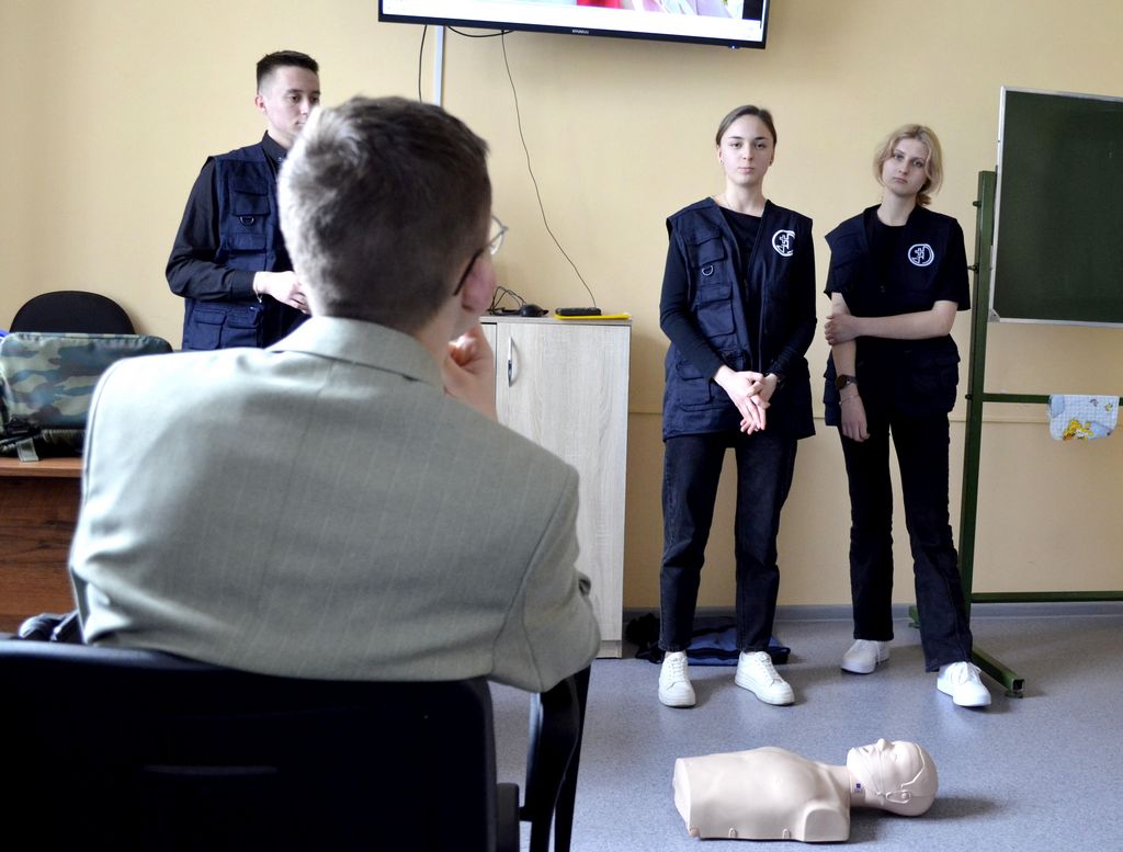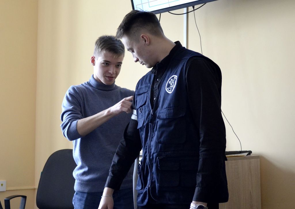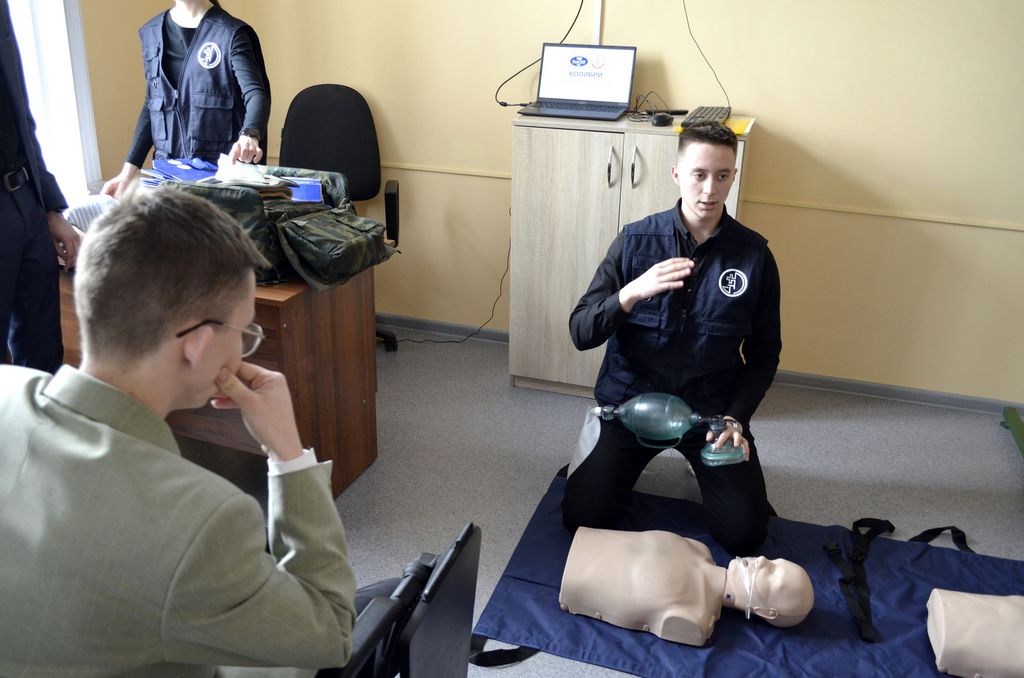Студенты медицинского университета из волонтерского отряда «Колибри» рассказали о своей деятельности в учебном центре, познакомили с его устройством и персоналом. На тренинге по оказанию первой медицинской помощи наши студенты получили все необходимые знания о видах повязок, разновидностях ран и правилах их обработки. Все полученные навыки удалось отработать на специальных манекенах и на самих себе.