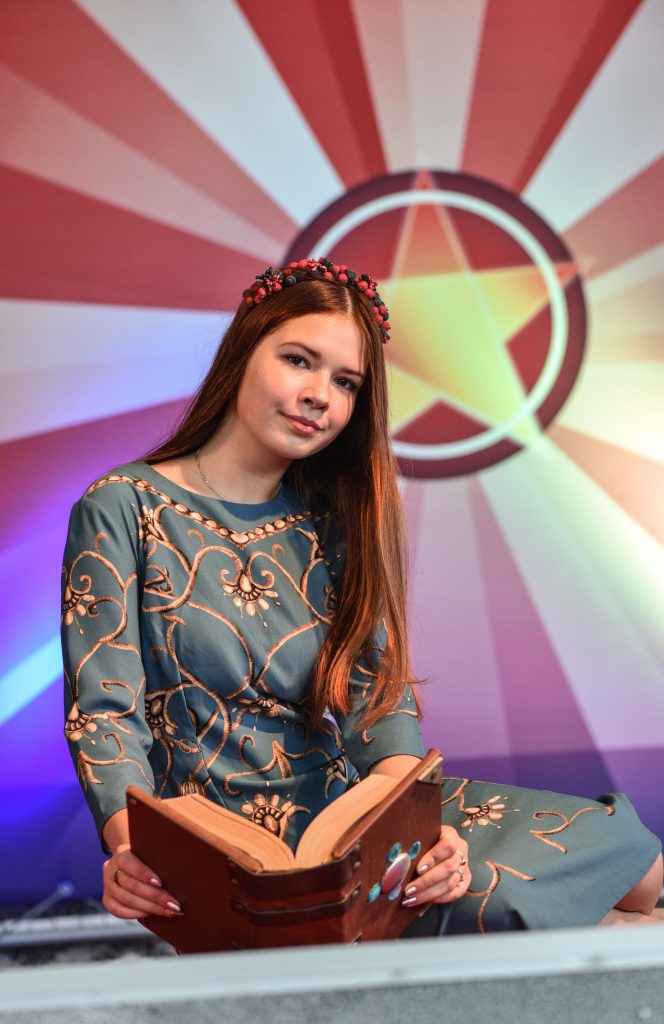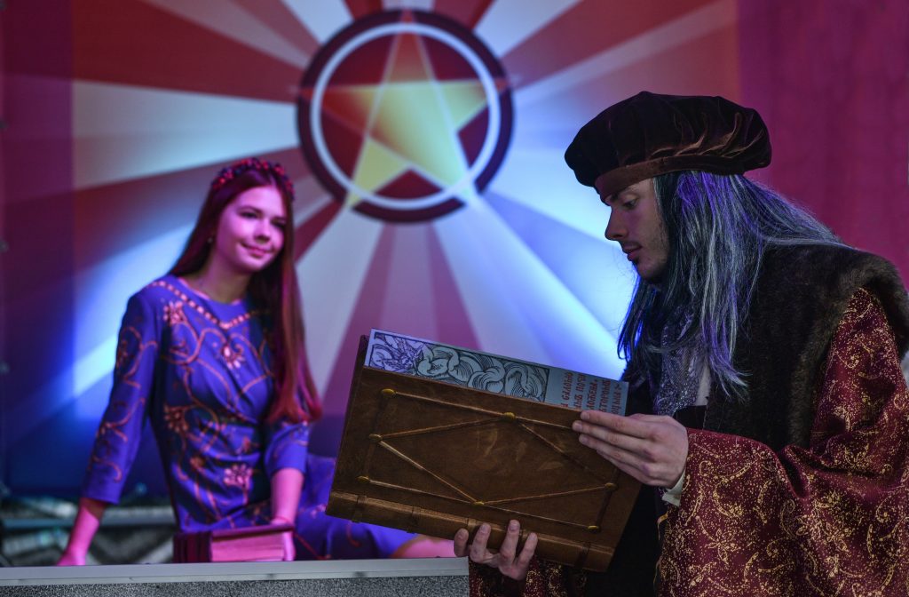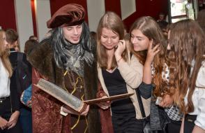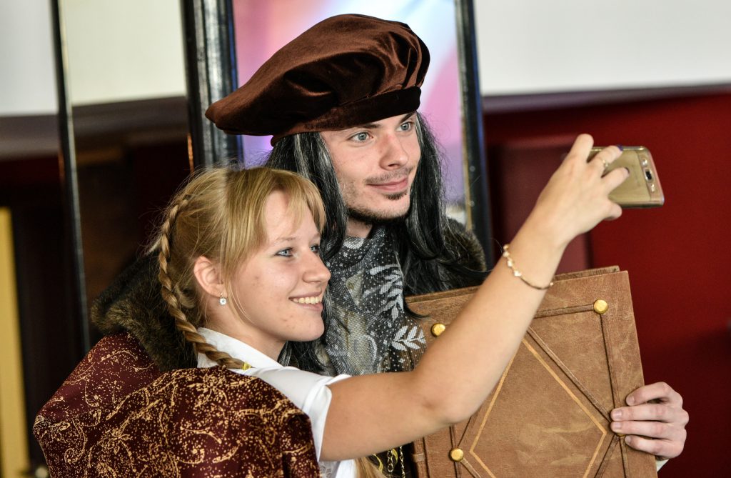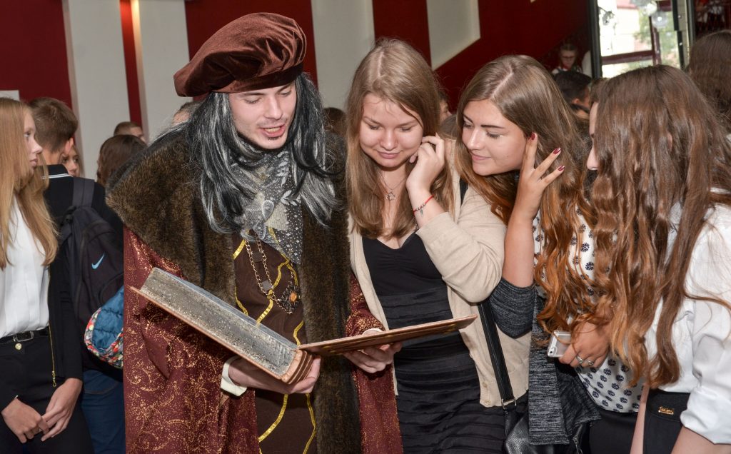Наш университет организовал на выставке тематическую фотозону. Все желающие смогли сделать на память яркую фотографию с Франциском Скориной, в роли которого выступил студент физического факультета Артем Дасько.