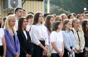 С напутственными словами к первокурсникам обратилась и председатель Гомельской областной организации Белорусского профсоюза работников образования и науки Жанна Жданович. Жанна Анатольевна поздравила юношей и девушек с началом нового жизненного этапа, а также пожелала ребятам успехов и новых достижений.