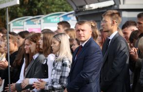 Первые поздравления вчерашним школьникам адресовал ректор ГГУ имени Ф. Скорины Сергей Хахомов. Сергей Анатольевич рассказал ребятам об университете и перспективах, которые открывает перед молодыми людьми ведущий вуз Гомельщины: