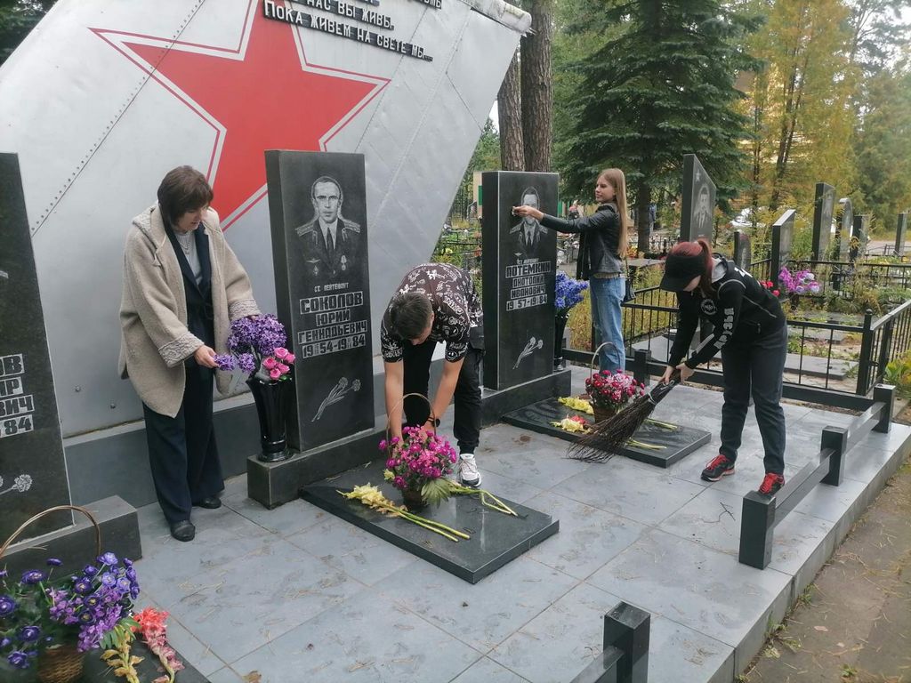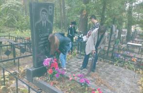 Не обошли своим вниманием волонтеры и захоронения летчиков авиационного гарнизона «Зябровка». В Зябровке базировалась летная эскадрилья Российского 290-го особого дальнего разведывательного авиаполка. Старшее поколение Гомеля помнит звуки зябровских самолетов-разведчиков в небесах над Гомелем. Тогда, после распада единой страны, они контролировали ситуацию на Балтике и Севере, летали на Кольский полуостров. Полеты летчиков Зябровского авиаполка придавали уверенности, что натовские асы не будут патрулировать белорусское небо. Поклон вам всем, погибшим и живущим, ветераны Зябровки! Но особый поклон тем, кто в мирное время отдал свои жизни при испытании новых бомбардировщиков и ценой собственной жизни дал нам, ныне живущим, твердую уверенность в силе нашей авиации. Полк перебазировался в Россию, а могилы 43 летчиков, навсегда оставшихся в белорусской земле ради нашего спокойствия, не остались бесхозными. Над теми могилами, чьи родные сейчас далеко, взяли шефство мы – волонтеры отряда «Ветеран». Мы не только наводим порядок на захоронениях, мы проводим уроки мужества прямо на могилах героев рассказывая о тех, кто без сомнения и промедления шагнули в вечность и именно поэтому должны остаться в наших сердцах. На Аллее Героев кладбища «Южное» похоронен Герой России Виктор Семенович Оськин, ценой своей жизни спасший жителей микрорайона г. Гомеля от неминуемой гибели.