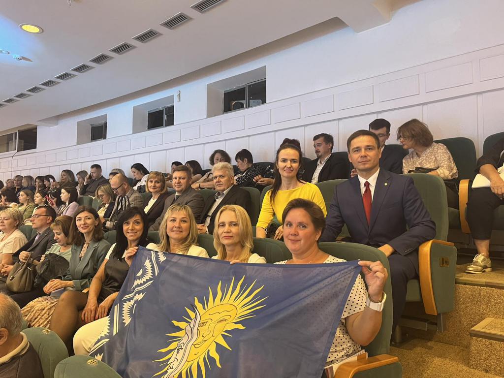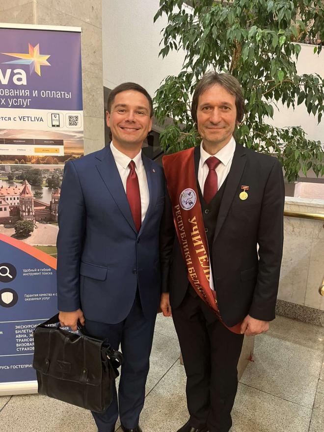 Делегация ГГУ имени Франциска Скорины во главе с проректором по воспитательной работе Дмитрием Ходановичем приняла участие в торжественном собрании и праздничном концерте, посвященном Дню учителя. На сцене Дворца Республики «Учителям года» в восьми номинациях вручили памятные статуэтки в виде хрустальных журавлей. Победителем конкурса в этом году стал учитель изобразительного искусства Довской средней школы Рогачевского района Сергей Шаминский.