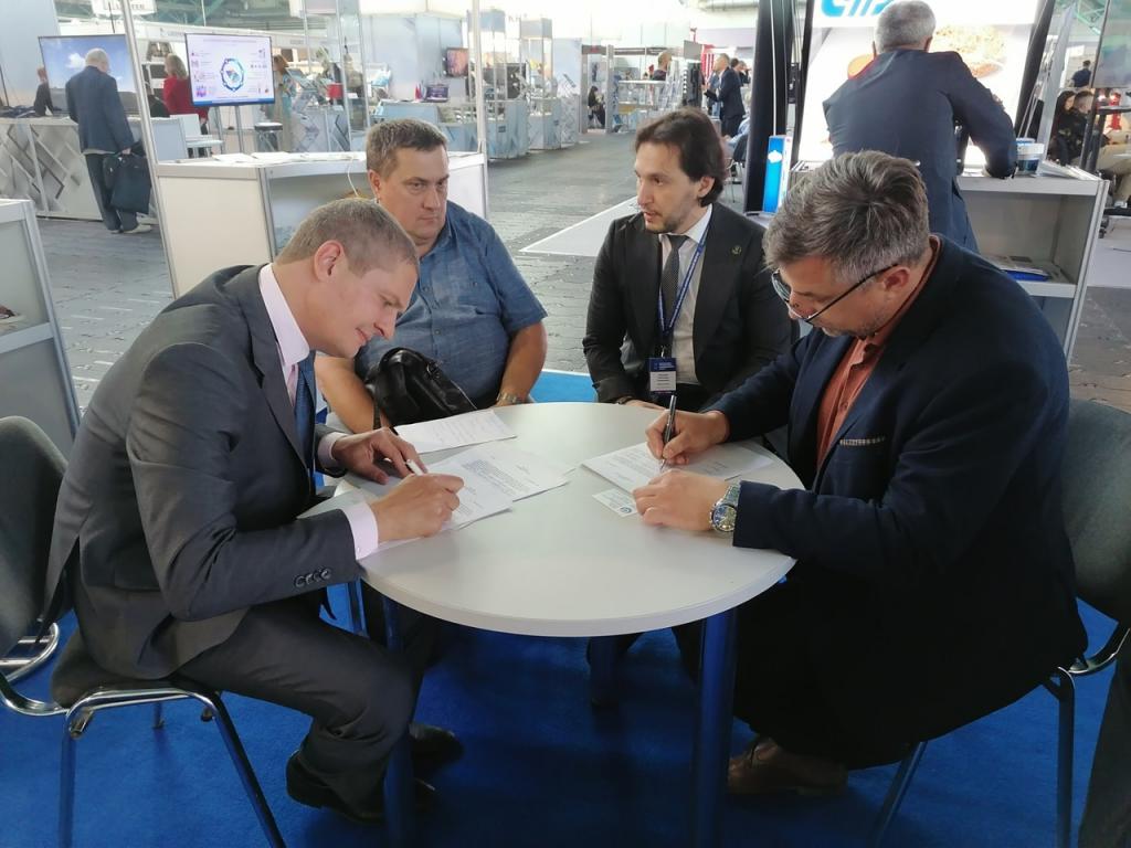 ГГУ имени Ф.Скорины принял участие в 26-ой международной выставке технологий и инноваций в промышленности «ТЕХИННОПРОМ». Научные разработки нашего университета в области микроэлектроники представили научные сотрудники проблемной научно-исследовательской лаборатории Александр Маевский и Константин Данильченко. Проректором по научной работе Дмитрием Коваленко и заведующим кафедрой оптики Владимиром Гайшуном были проведены переговоры о сотрудничестве и подписаны несколько протоколов о намерениях: с ФГБОУ ВО «Кубанский государственный университет» по вопросам развития партнёрства и взаимодействия в научно-технологической сфере, сфере кибербезопасности, подготовки кадров, обмена опытом; с НИТУ «МИСИС» - по вопросам реализации совместных НИР и сотрудничества в области солнечной энергетики, новых материалов; с ГНПО «Оптика оптоэлектроника и лазерная техника» - по вопросам разработки новых композиционных материалов, исследований в области лазерной техники, фотовольтаики, оптики и др.