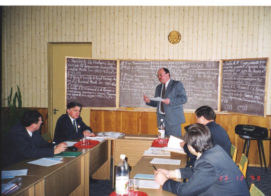 Совет функционирует с 1995 года. Председателем Совета до 2013 года был член-корреспондент НАН Беларуси Л.А. Шеметков, с 2013 года по настоящее время профессор А.Н. Скиба. На первом заседании Совета 6 июля 1995 года С.Ф. Каморников успешно защитил докторскую диссертацию «Субнормальные подгруппы в теории формаций конечных групп». Всего в Совете защищено 102 диссертации, в их числе 13 докторских.