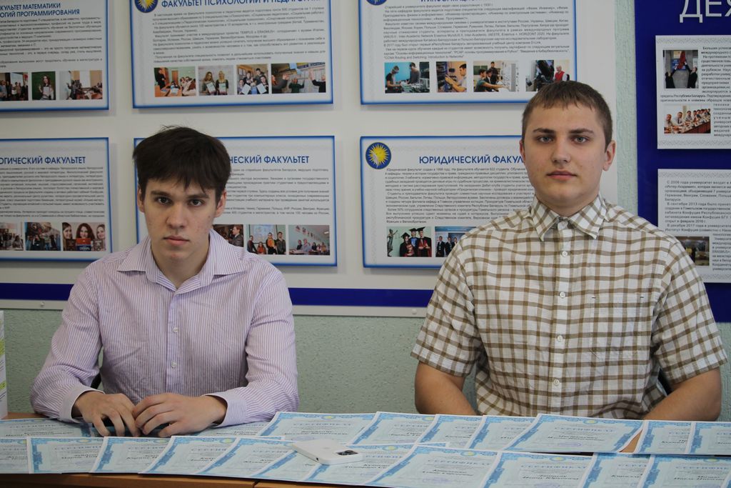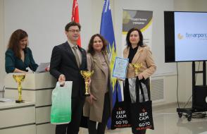 Ведущий специалист по подбору персонала ЗАО «Альфабанк» Максим Владимирович Улькин и специалист 1 категории по подбору персонала Ирина Валерьевна Терентьева поздравили и вручили дипломы и подарки победителям 2 тура конкурса: 1 место – Олег Дорофеев, СШ № 44 им. Н.А. Лебедева г. Гомеля; 2 место – Кирилл Левин, СШ № 11 г. Мозыря; 3 место – Алина Кравченко, ГГАЭК.