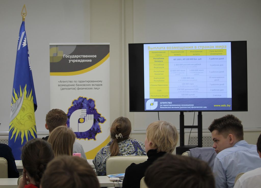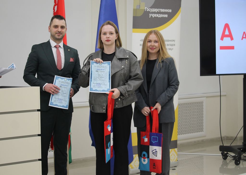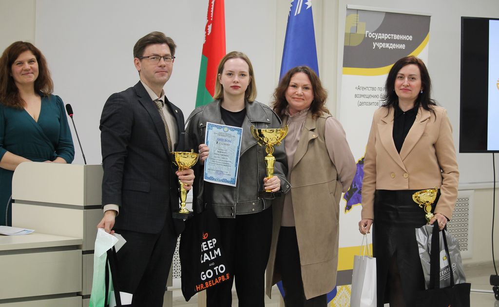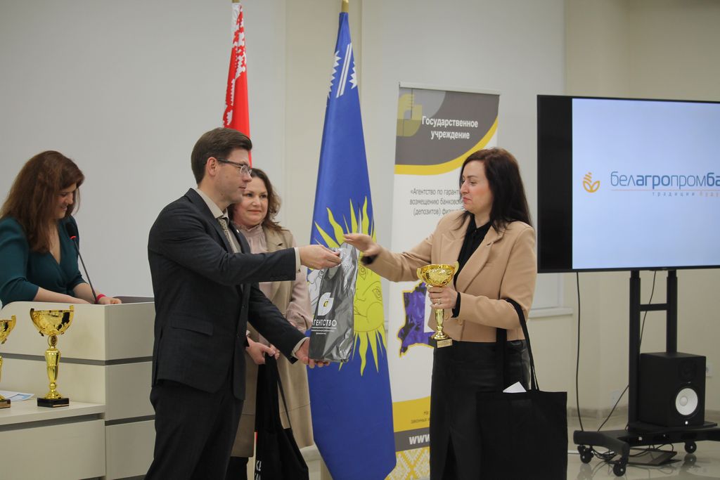 С приветственным словом к участникам конкурса обратилась начальник отдела обеспечения выплаты возмещения Агентства по гарантированному возмещению банковских вкладов физических лиц Татьяна Владимировна Черкасова и главный специалист отдела обеспечения выплаты возмещения Наталья Николаевна Смелова. Они поздравили и вручили призы абсолютным победителям конкурса среди учащихся учреждений общего среднего образования.