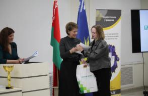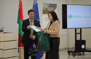 Менеджер центра розничного бизнеса филиала № 300 Гомельского областного управления ОАО «АСБ Беларусбанк» Валентина Анатольевна Косенко вручила призы победителям в номинациях конкурса: «Экономическая теория» - Дмитрий Кузнецов, Гомельский городской лицей №1; «Маркетинг» - Алина Кравченко, ГГАЭК; «Финансы» - Алина Кравченко, ГГАЭК; «Экономическая информатика» - Олег Дорофеев, СШ № 44 им. Н.А. Лебедева г. Гомеля.