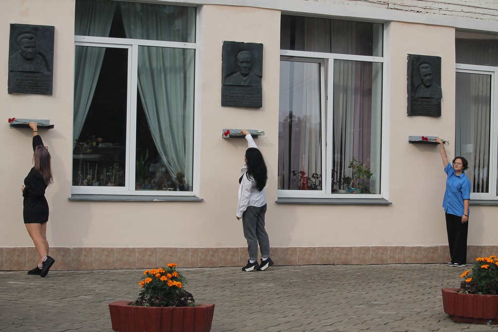 Данью памяти людям, стоявшим у истоков создания вуза, стала церемония возложения цветов к мемориальным доскам заслуженных академиков и почетных профессоров ГГУ, участников Великой Отечественной войны, фронтовиков В.В. Аниченко, И.Ф. Харламову и М.А. Дмитриеву.