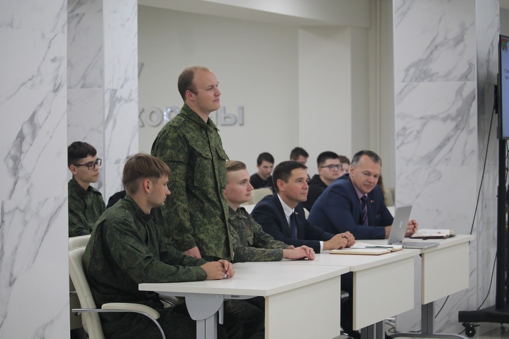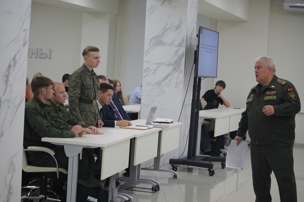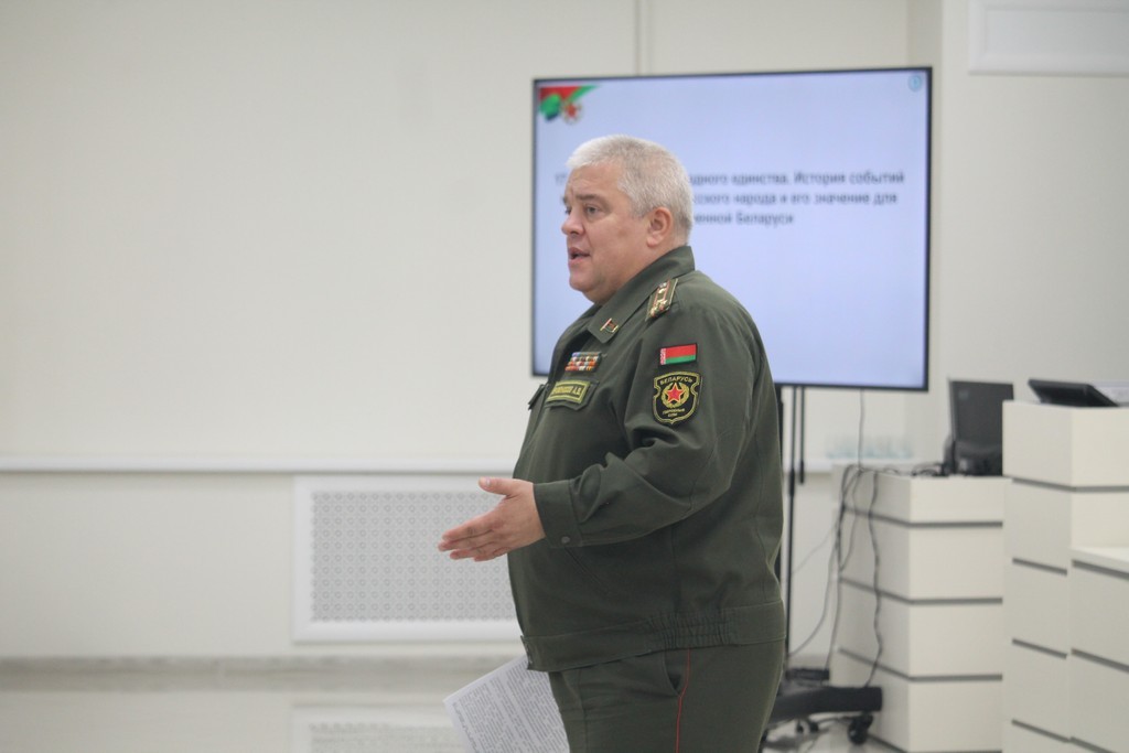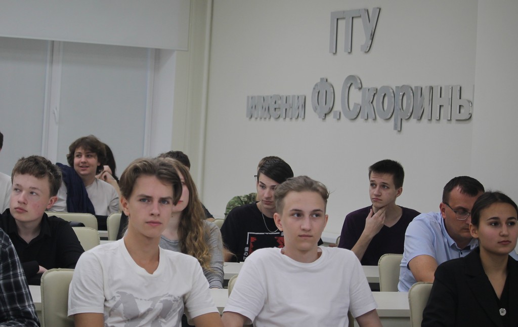 В канун празднования Дня народного единства в ГГУ имени Ф.Скорины прошла встреча Члена Совета Республики Национального собрания Республики Беларусь, военного комиссара Гомельской области Андрея Кривоносова со студентами и преподавателя университета. Андрей Владимирович рассказал о событиях, предшествовавших восстановлению единства белорусского народа в 1939 году, а также об актуальных задачах, стоящих перед обществом сегодня. Студенты размышляли на тему белорусской государственности, роли молодежи в жизни общества, интересовались нюансами прохождения срочной военной службы.