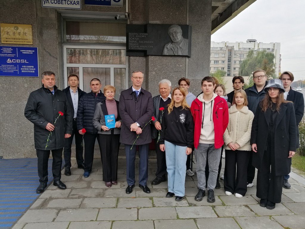 Коллектив Гомельского государственного университета имени Франциска Скорины возложили цветы к мемориальной доске с барельефом Бориса Васильевича.