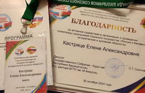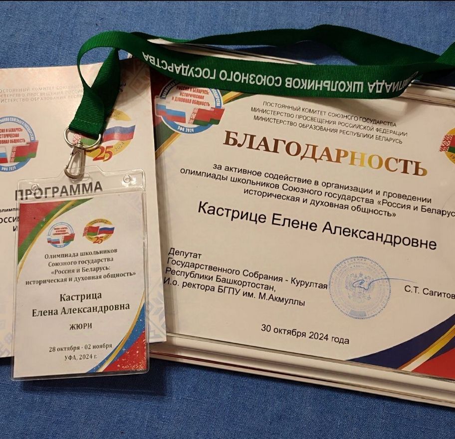 С 28 октября по 2 ноября в городе Уфа на базе Башкирского государственного педагогического университета им. М. Акмуллы состоялась ежегодная Олимпиада школьников Союзного государства «Россия и Беларусь: историческая и духовная общность», в которой приняли участие 23 команды из Республики Беларусь и Российской Федерации. Программа заключительного этапа включала два тура: написание сочинения и выполнение комплексной работы по русскому языку и литературе, творческие конкурсы. Доцент кафедры русской и мировой литературы Елена Кастрица входила в состав жюри олимпиады. Елена Александровна отметила, что подобные образовательные проекты позволяют учащимся расширять кругозор, стимулируют интерес к русскому языку и литературе, развивают личностные качества, а также способствуют укреплению сотрудничества с российскими партнерами в области образования, науки и культуры.
