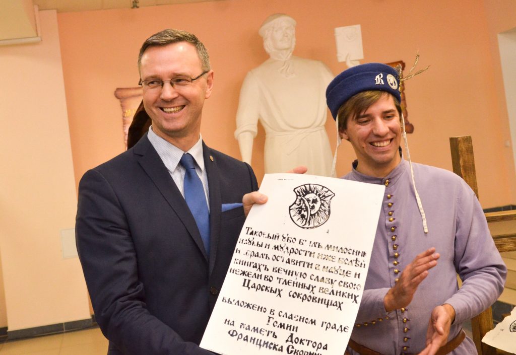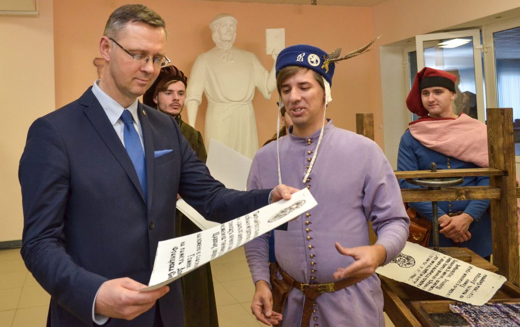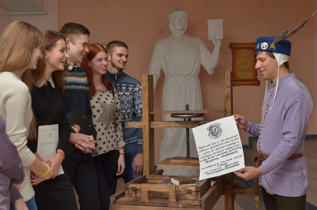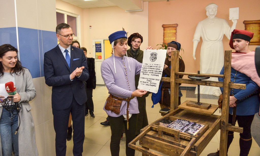 Члены СНИЛ «Белы Крыж» совместно со студентами и сотрудниками исторического факультета представили участникам форума возможности печати книг на средневековом станке. Организаторы мероприятия долго готовились к представлению, искали возможности изготовления букв нужного шрифта, который использовался Скориной при печати предисловия к «Книге Премудрости Иисуса, сына Сирахова».