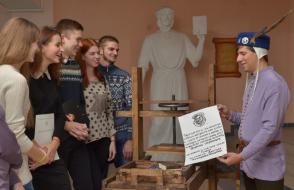 Интерактивная площадка «Эпоха Скорины», которая развернулась в холле первого корпуса в рамках республиканского форума «Скарына і наш час», наглядно продемонстрировала собравшимся метод печати книг, которым пользовались в XVI веке.