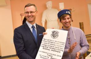 Эксперимент удался, и зрителям представили только что отпечатанный фрагмент текста, сделанный по технологии самого Франциска Скорины.