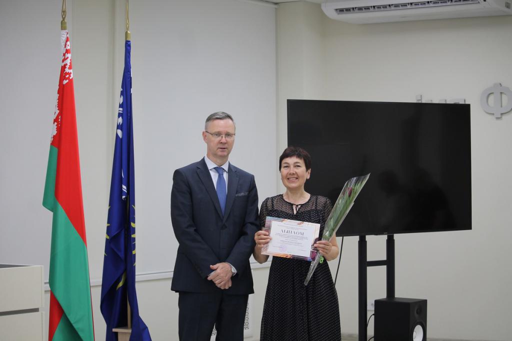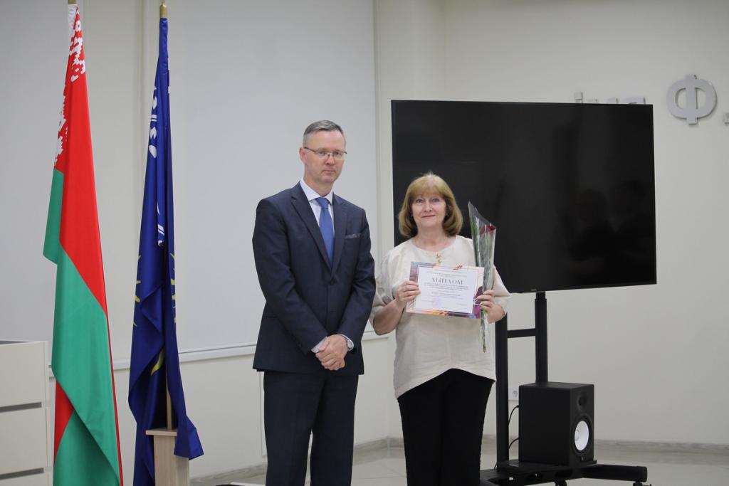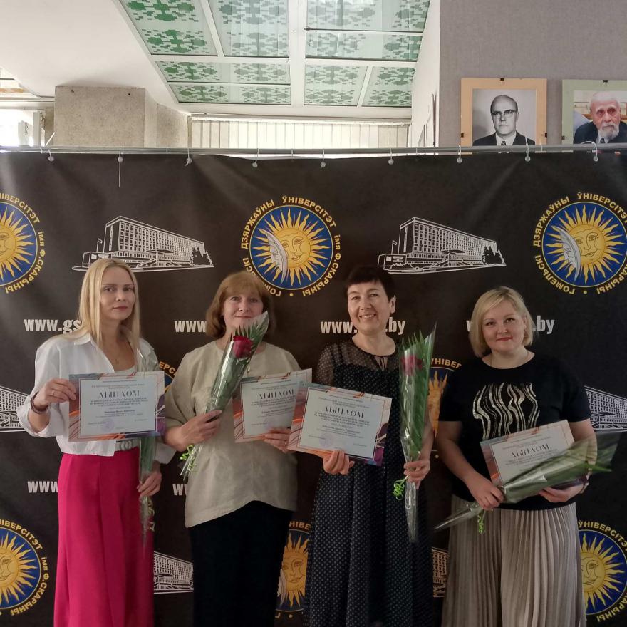 За многолетнюю результативную деятельность по развитию художественного творчества и большому вкладу в эстетическое образование молодежи были награждены руководители творческих объединений студентов ГГУ имени Ф. Скорины: Людмила Дубровская, Елена Кастрица, Людмила Климович и Ольга Меженная.