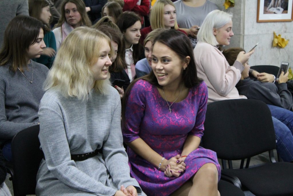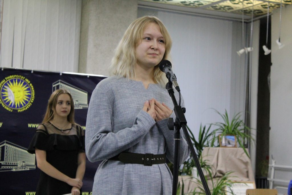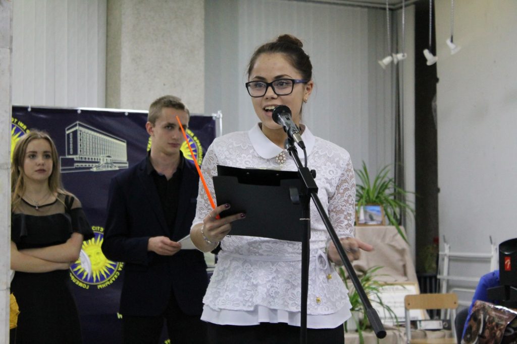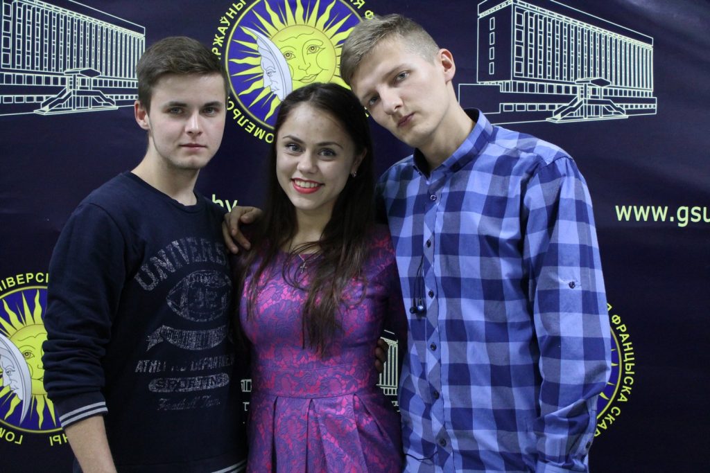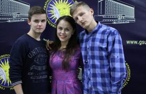 За звание лучшего студента ГГУ 2017 года боролись представители трех факультетов: Литовкин Николай (факультет физической культуры), Завтрикова Полина (филологический факультет) и Рощина Оксана (факультет иностранных языков).