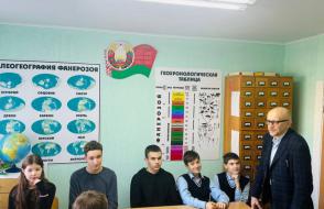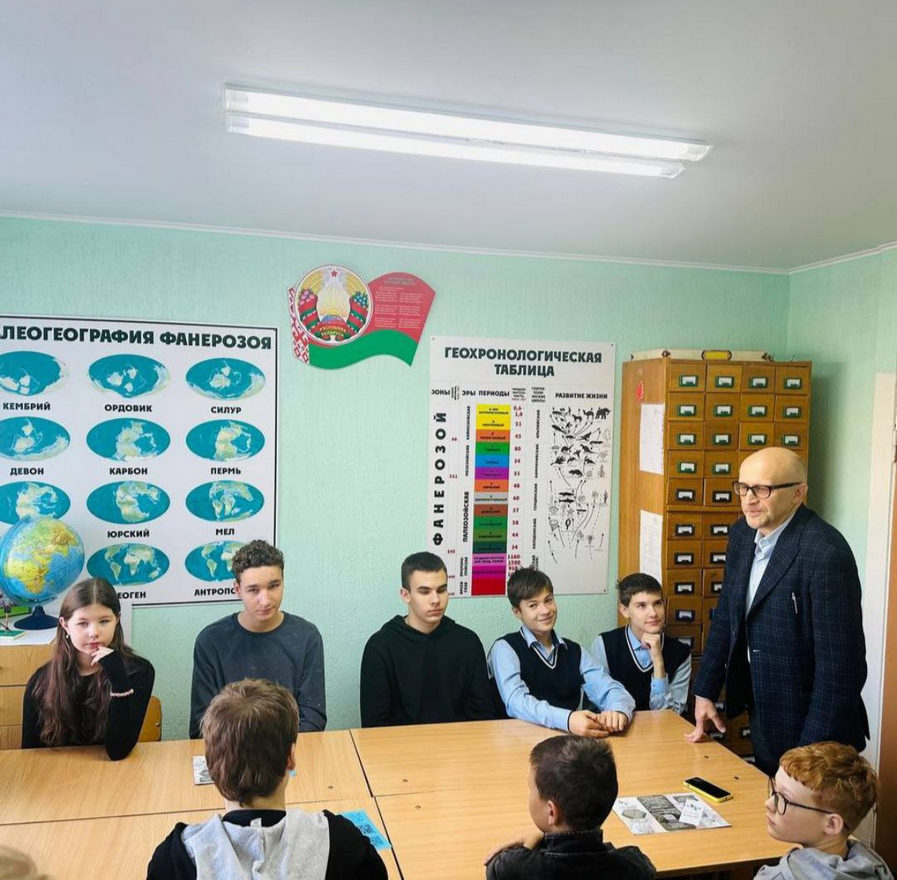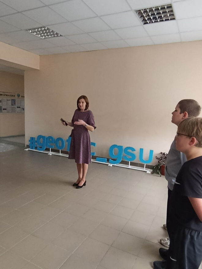 Еще одна профориентационная встреча прошла в г. Светлогорске. Декан геолого-географического факультета С.В. Андрушко и заведующей кафедрой геологии и географии А.П. Гусев посетили в период каникул выпускников школ города, которые собрались в ГУО « Центр творчества детей и молодежи «Ювента». Учащимся рассказали об особенностях вступительных испытаний на факультет, специальностях и местах трудоустройства после окончания обучения. Представители факультета посетили ОПИ «Геологический» и встретились с командой юных геологов «Агат», геологический музей центра.