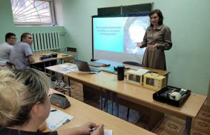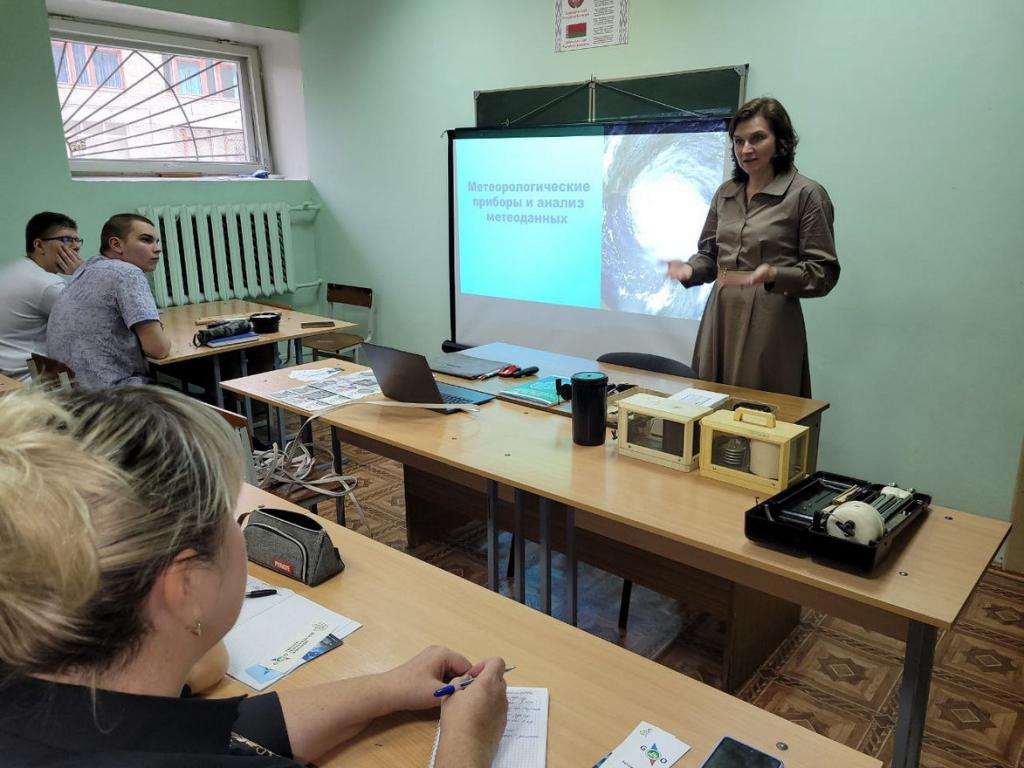 Большой интерес как среди учителей географии, так и школьников вызвала лекция-практикум «Метеорологические приборы, анализ данных метеонаблюдений» доцента кафедры геологии и географии Т.Г. Флерко. Во время занятий присутствующие узнали про профессию метеоролога, увидели, с помощью каких приборов можно наблюдать за погодными условиями и как анализировать полученную информацию.