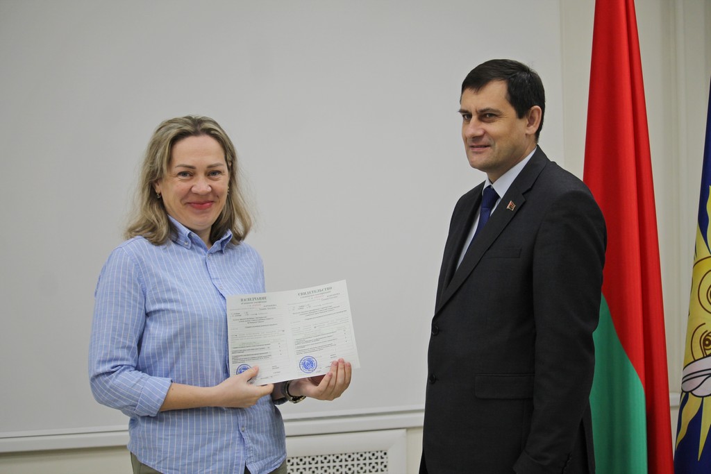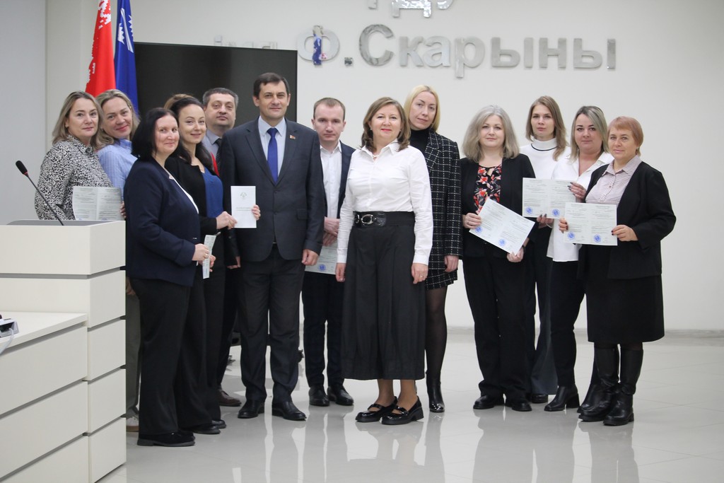 Итогом интенсивного учебного процесса стала торжественная церемония вручения документов. Свидетельства о повышении квалификации слушателям вручил Дмитрий Кухарев, заместитель начальника главного управления юстиции-начальник управления принудительного исполнения главного управления юстиции Гомельского облисполкома. В своей речи он подчеркнул высокую значимость роли референтов в системе правоприменения.