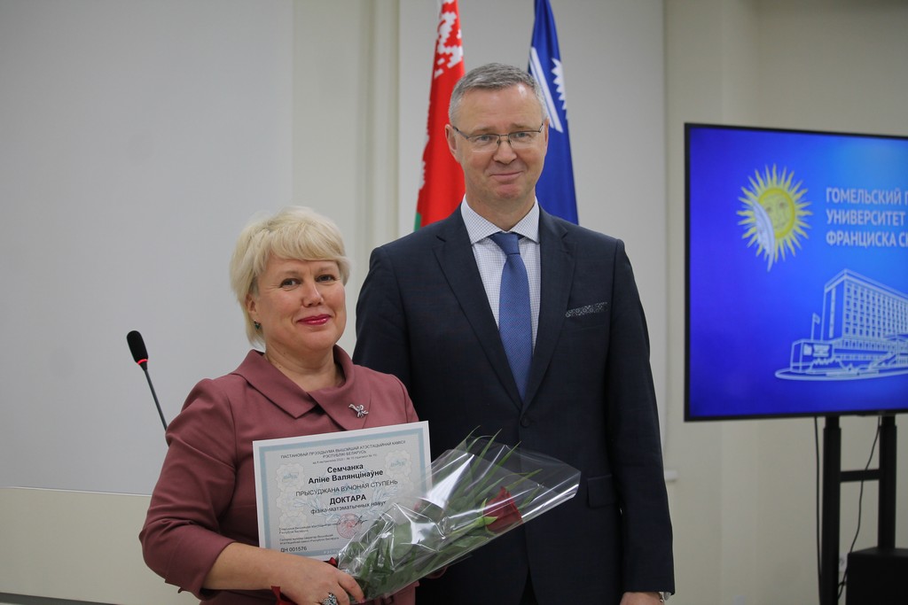 Доценту кафедры радиофизики и электроники Алине Семченко вручен диплом доктора физико-математических наук.
