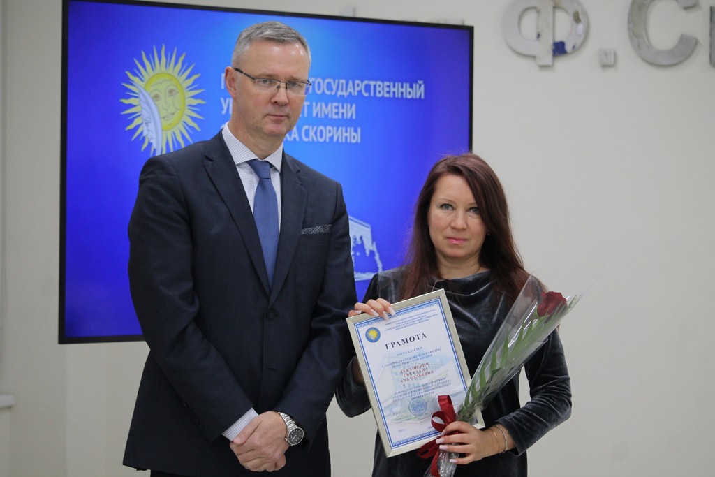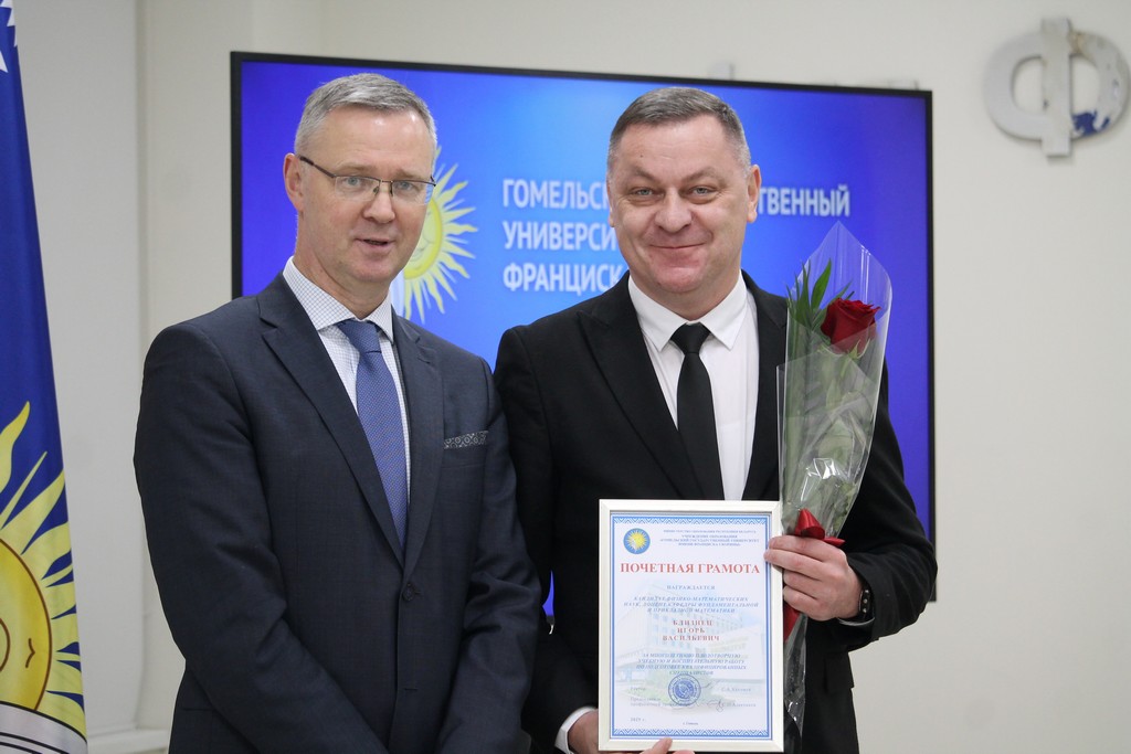 В Гомельском государственном университете имени Ф. скорины состоялось ноябрьское заседание Совета университета. Заседание началось на торжественной ноте: ряд представителей ГГУ получил заслуженные награды.