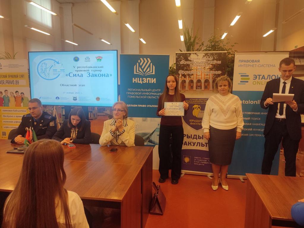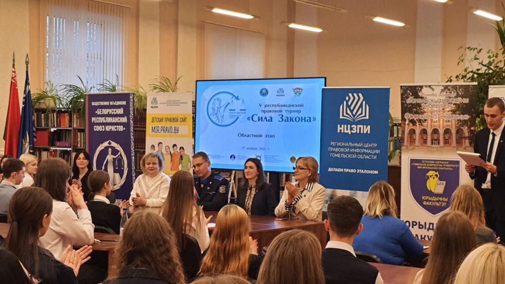 27 ноября на базе юридического факультета ГГУ имени Ф. Скорины состоялся областной этап V Республиканского правового турнира «Сила Закона». За победу в областном туре состязались 58 победителей районного этапа.