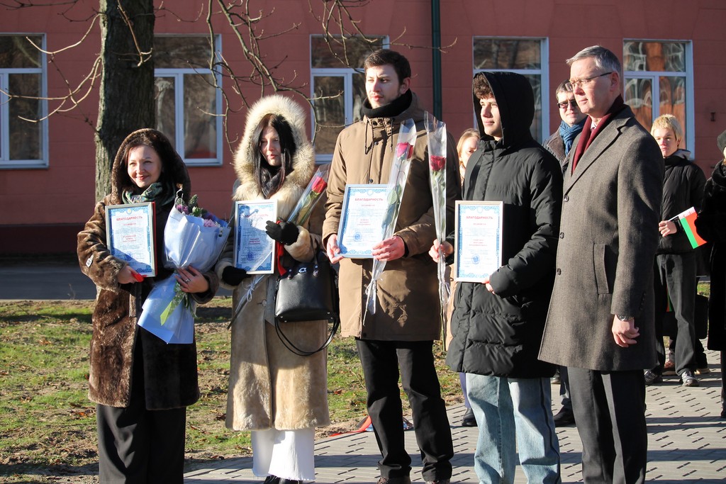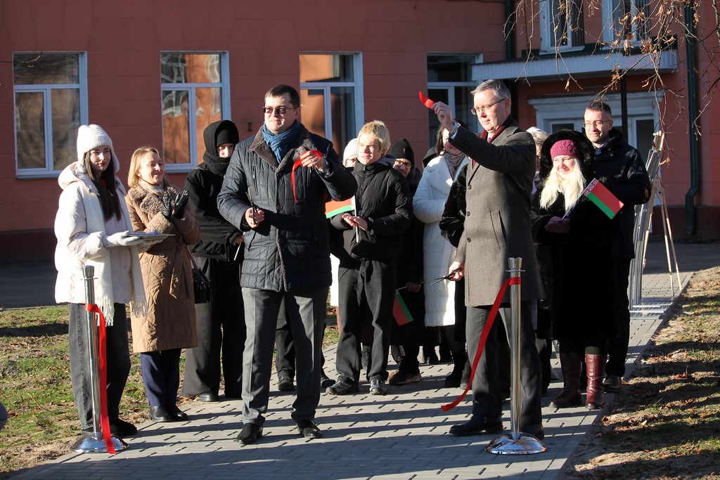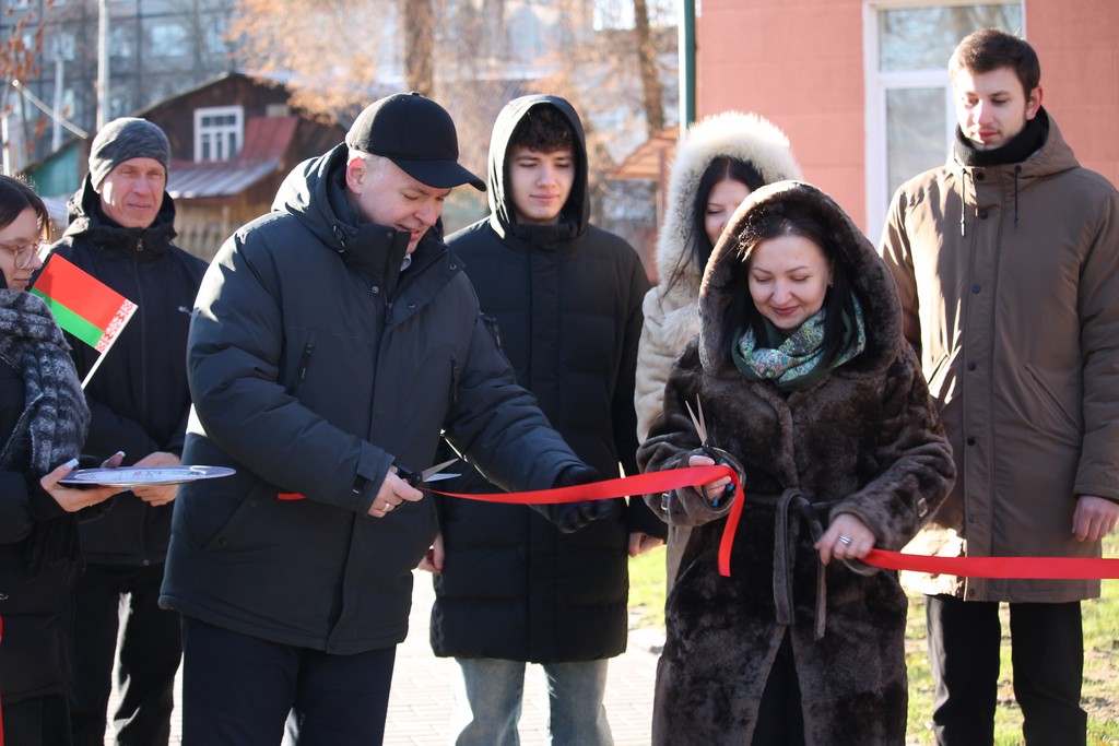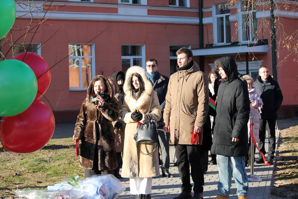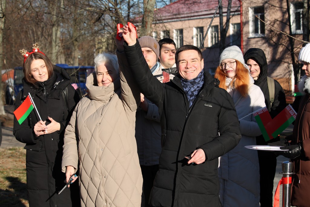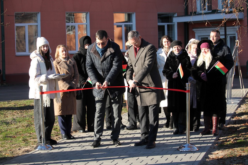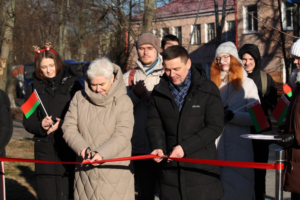 Вместе с ними символическую ленту перерезали ректор ГГУ имени Ф.Скорины Сергей Хахомов, проректор по безопасности, режиму и кадрам Аркадий Куксо, проректор по идеологической и воспитательной работе Дмитрий Ходанович, председатель профсоюзной организации университета Сергей Азявчиков.