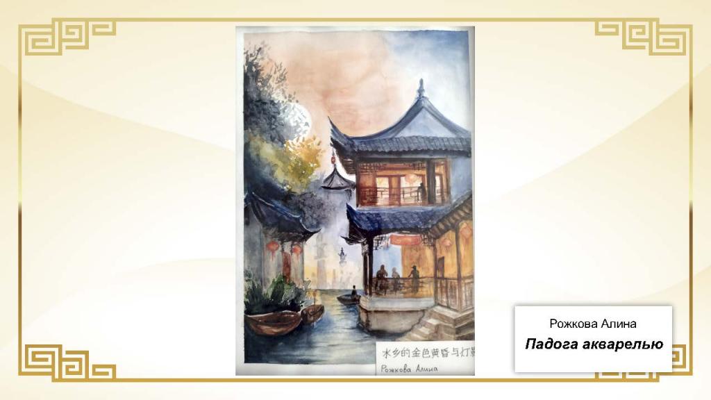 Особое внимание гостей привлекли оригинальные ручные поделки, отличавшиеся сложностью исполнения и художественной выразительностью. Онлайн-голосованием был определён приз зрительских симпатий, который завоевала Рожкова Алина за работу «Пагода акварелью».